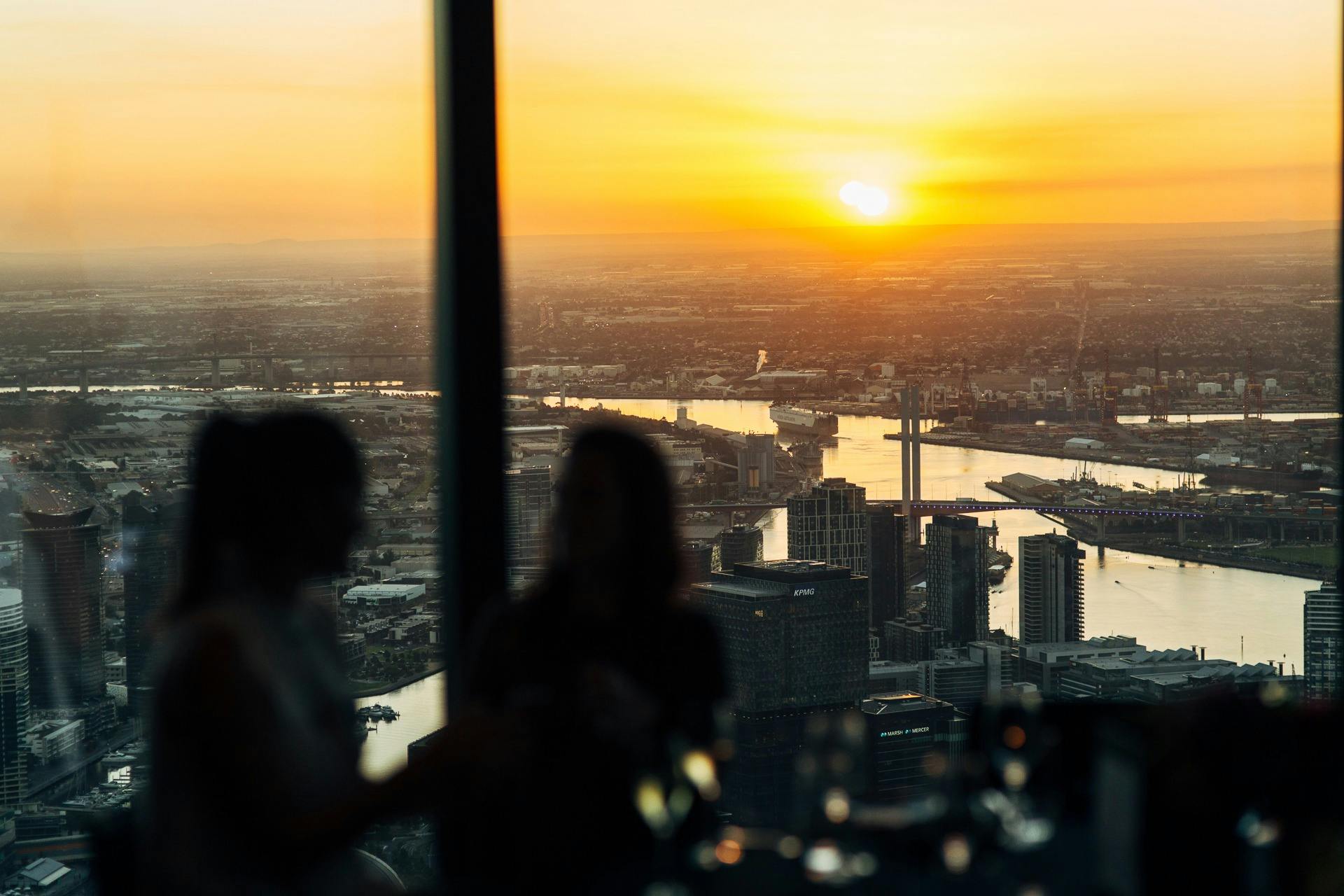 Bold yet elegant, Eureka 89 takes dining to new heights. Towering 300 metres above sea level, guests can enjoy 360 degrees views of magical Melbourne from the MCG and Rod Laver Arena to Flinders Street Station, Federation Square and beyond to the Dandenong Ranges.