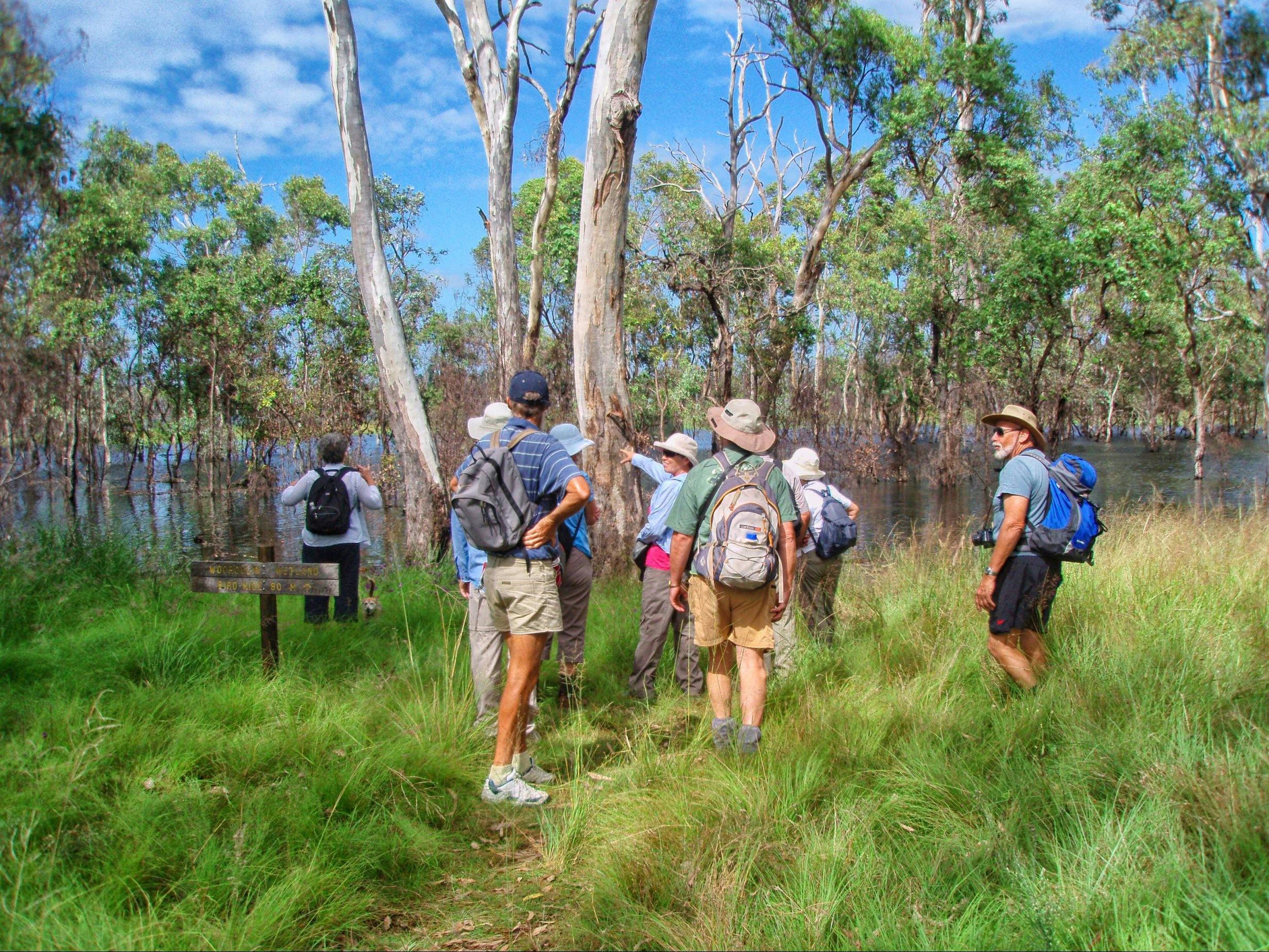 The Wooroolin Wetland is located at the township of Wooroolin, 16 kilometres north of Kingaroy along the Bunya Highway. Wooroolin Wetlands was declared a fauna sanctuary in 1973, now classified as a palustrine wetland, a non-tidal, inland, seasonally flooded, vegetated swamp. After successive floods in 2011 and 2013, the wetland burst its banks and Wooroolin was flooded for the first time in recorded history. A bird hide and two walking trails have been established for naturalists to fully appreciate resident and migratory fauna. However the walking trails are only accessible during dry periods and can be accessed from Wooroolin Sports Ground. Over 25 different birds have been sighted including nankeen kestrels, striated pardalotes and golden-headed cisticola. Over two kilometres of endangered vegetation has been fenced to help restrict access and protect the local and regional species. Revegetation is taking place in this eucalypt woodland and particular attention is being paid to the endangered Queensland Blue Gum. Wooroolin State School planted 80 native trees in 2003 and will continue with an annual tree-planting program. Nesting boxes have been provided as alternative habitats for sugar gliders and possums. Interpretive signage has been erected to promote project achievements, local information, wildlife and tracks.