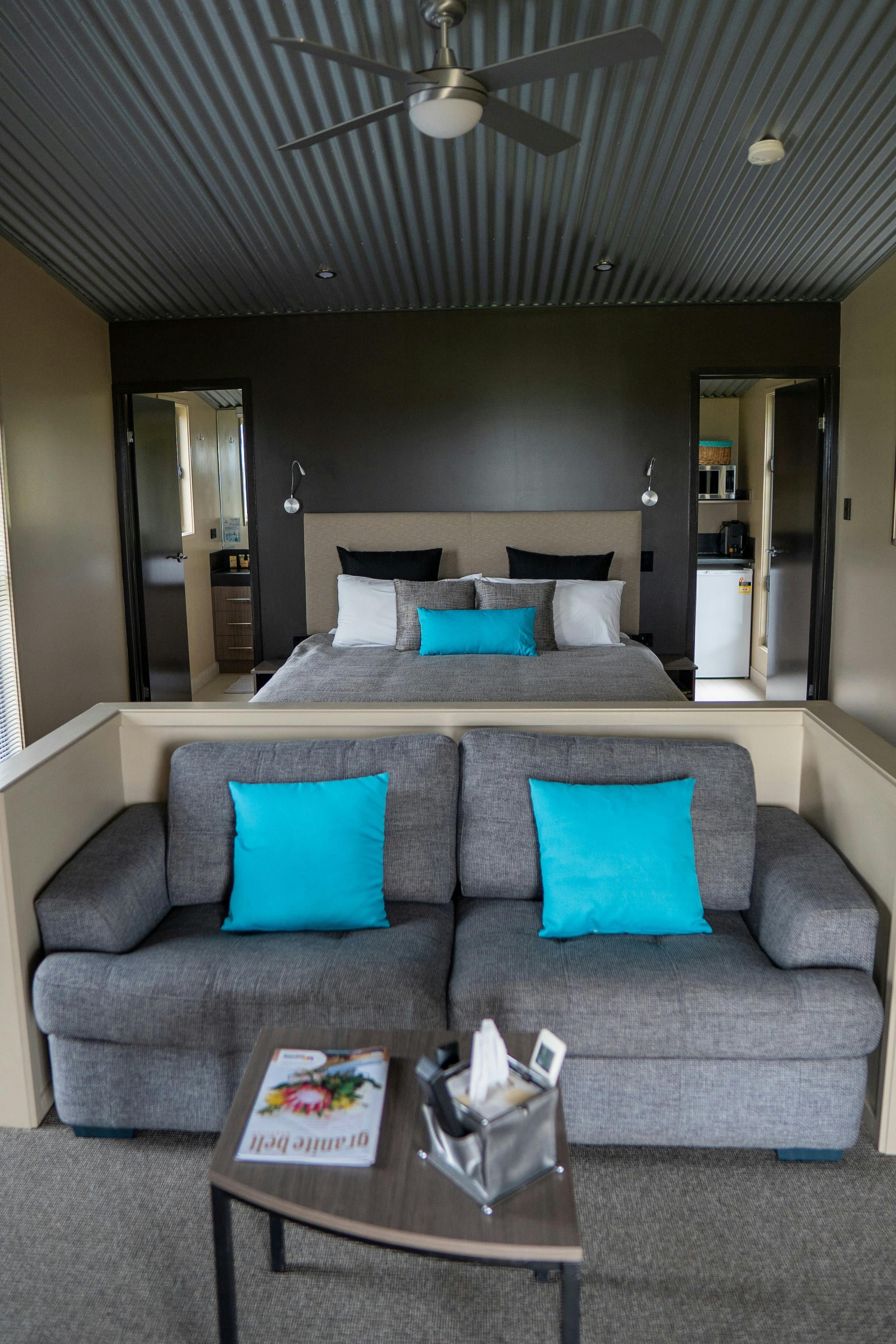 Relax in one of their twelve intimate contemporary self-contained studio cabins, enjoy spectacular vineyard views with interiors that exude luxury. Complement the pristine natural environment and provide a private place to rest, relax and refresh. In the fine linen of a king-sized bed, find the serene, silent sleep of a country retreat. Sit out on your deck and take in a great expanse of a clear Southern sky.