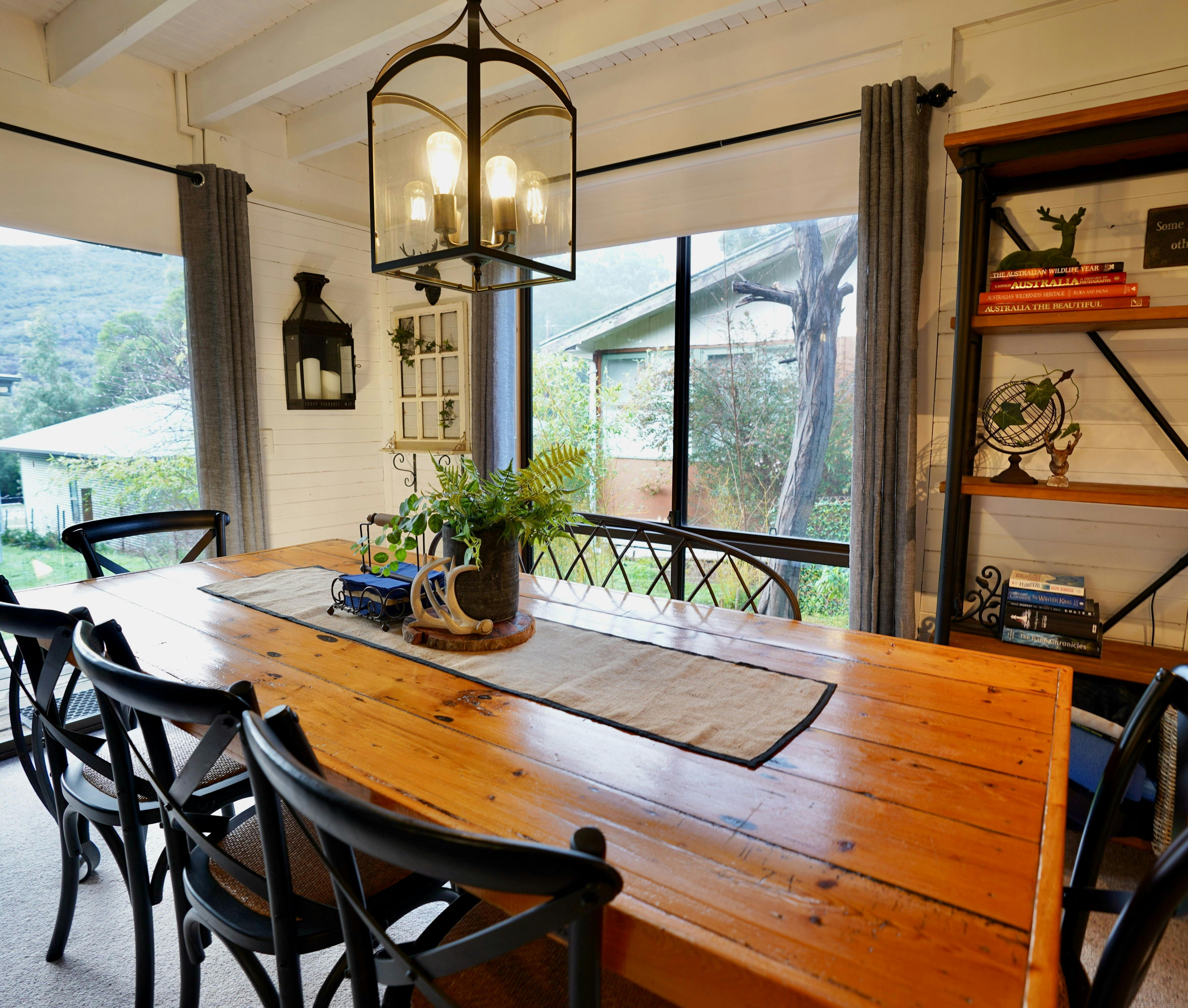 Nestled in the heart of Halls Gap and only a short ten minute stroll to the Visitor Information Centre, Cedar Country Retreat offers you more than accommodation, but a home away from home. Offering a warm country feel with designer touches and all of the modern amenities, this recently renovated property still retains its rustic charm. The three beautifully appointed bedrooms are all located upstairs and can comfortably sleep six people. Each room has its own personality, with sweeping mountain views from every room. A deck adjacent to the master puts you in the trees with views to Mt Ida. We also supply beautiful body products to make your stay one to remember. Moving downstairs, there is a new bathroom and deep French tub, for a relaxing soak in the evening after tackling the spectacular trails of the Grampians. The bright kitchen has been fully revamped with new appliances, including family-sized fridge, dishwasher and beautiful porcelain sink. This kitchen has everything you need, including a coffee machine and a good selection of tea and coffee. The dining and living rooms incorporate a coonara wood heater for those winter nights, split system air conditioners, comfy sofa and chairs. An over-sized dining table easily accommodates a group of six for meal times or general entertaining. All guests receive a complimentary bottle of local wine and chocolates.