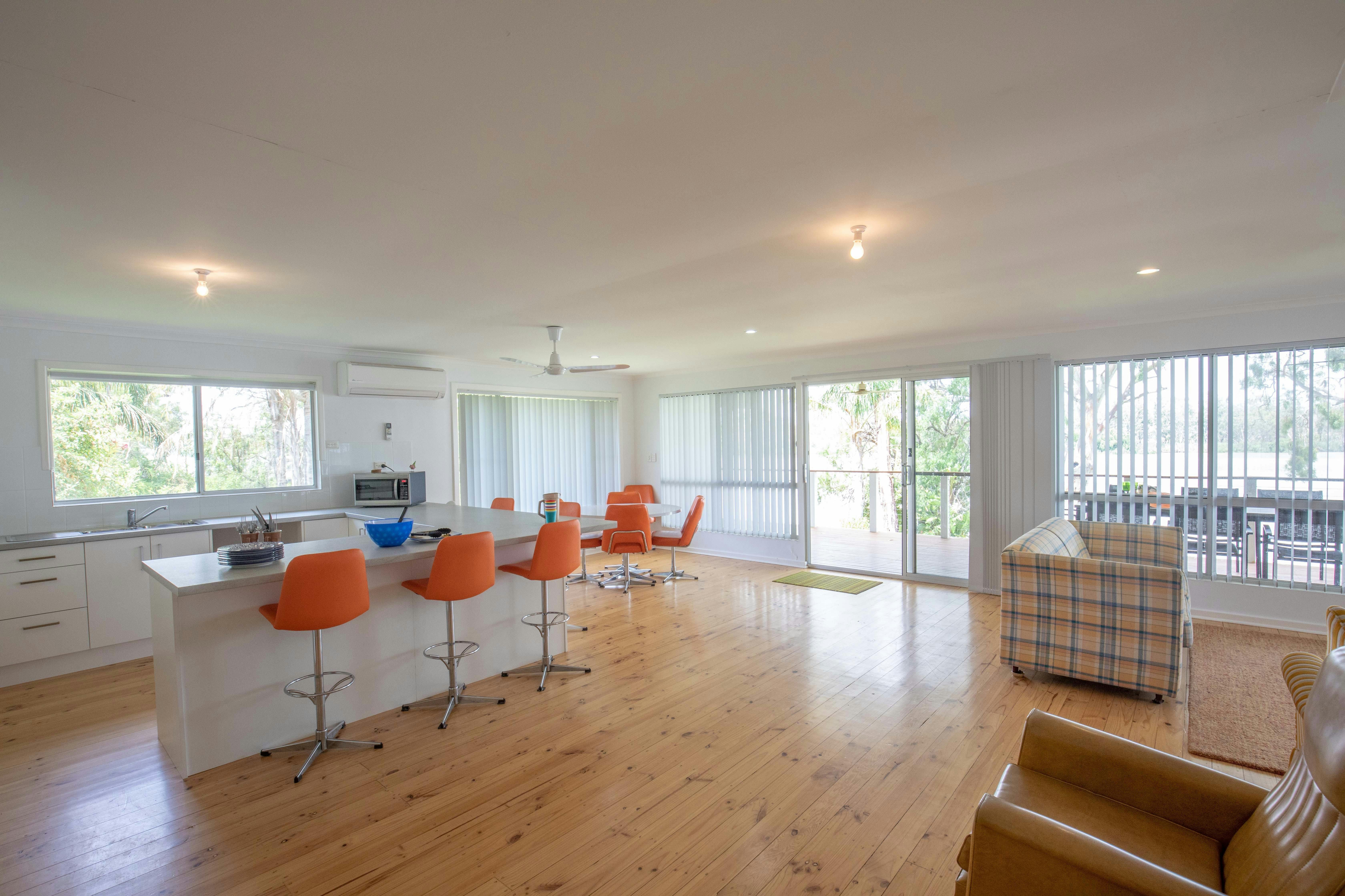 The well-appointed, open-plan kitchen and dining area create a relaxed environment where everyone can stay connected. Meals can be prepared and served on the large decking area, or you can use the BBQ for outdoor cooking, enjoying delicious meals with scenic river views.