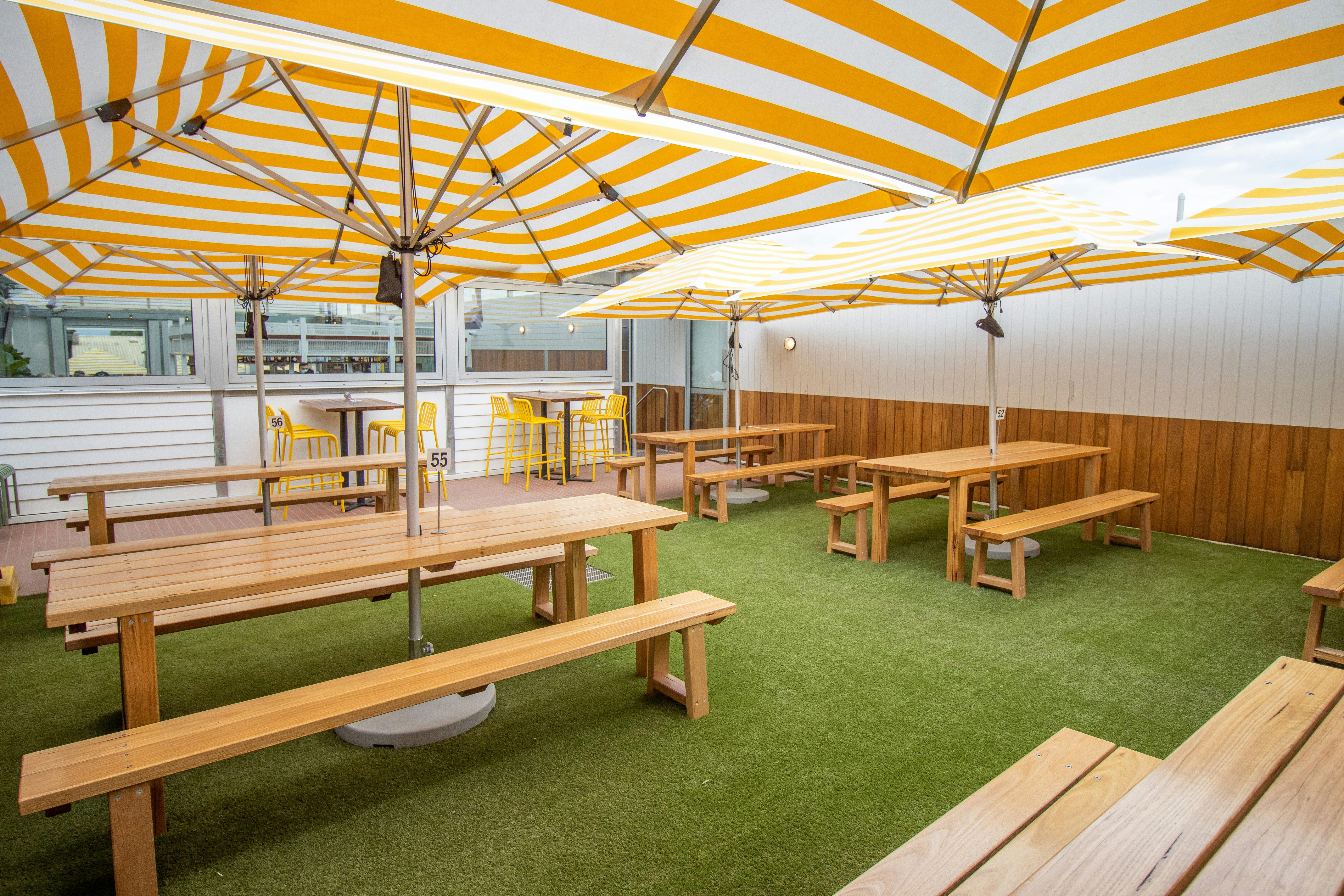 Choose your experience by eating and drinking in one of our four unique dining spaces. The Bistro and Front Bar feature a regional town atmosphere and some of the best local produce, and is the beating heart of the Portarlington Grand Hotel. The Atrium and Lawn are our newly designed open-air dining and drinks areas and are the perfect place to soak up the atmosphere, enjoy a seaside view and socialise.