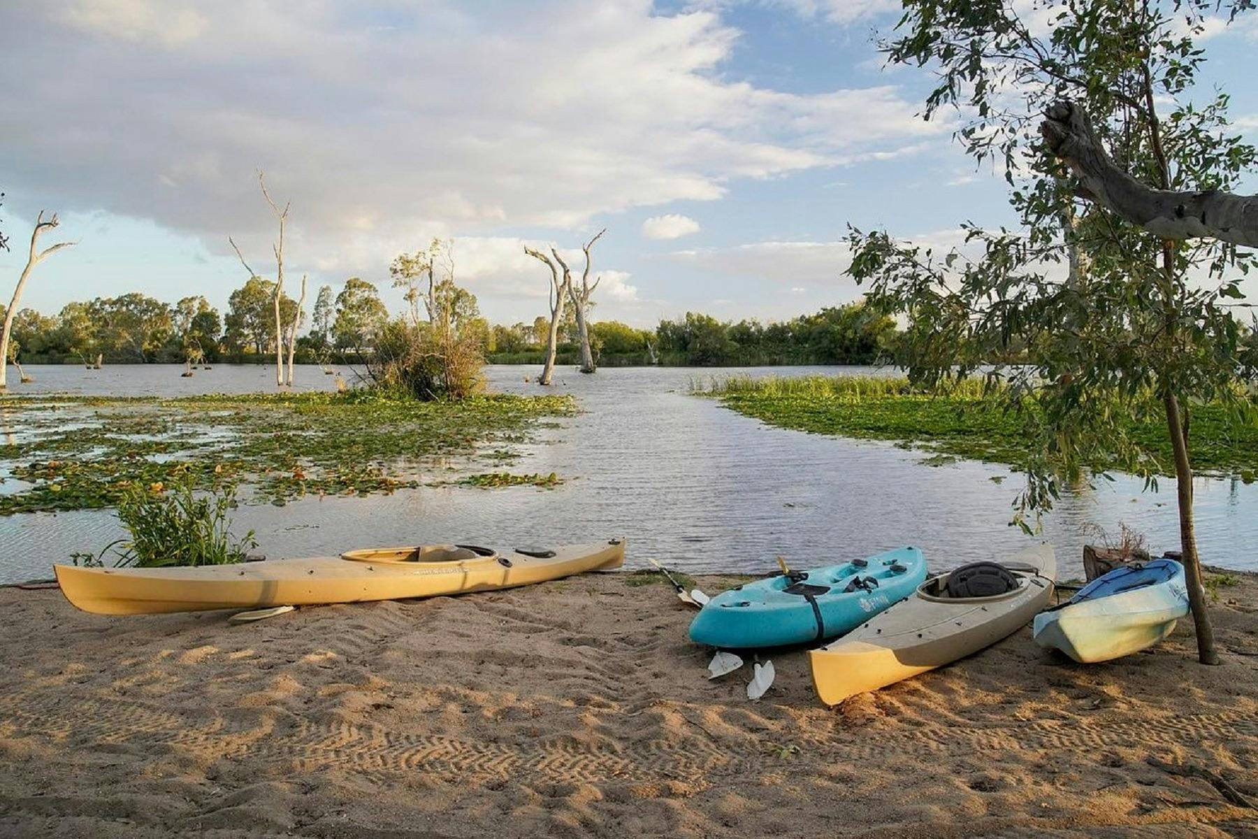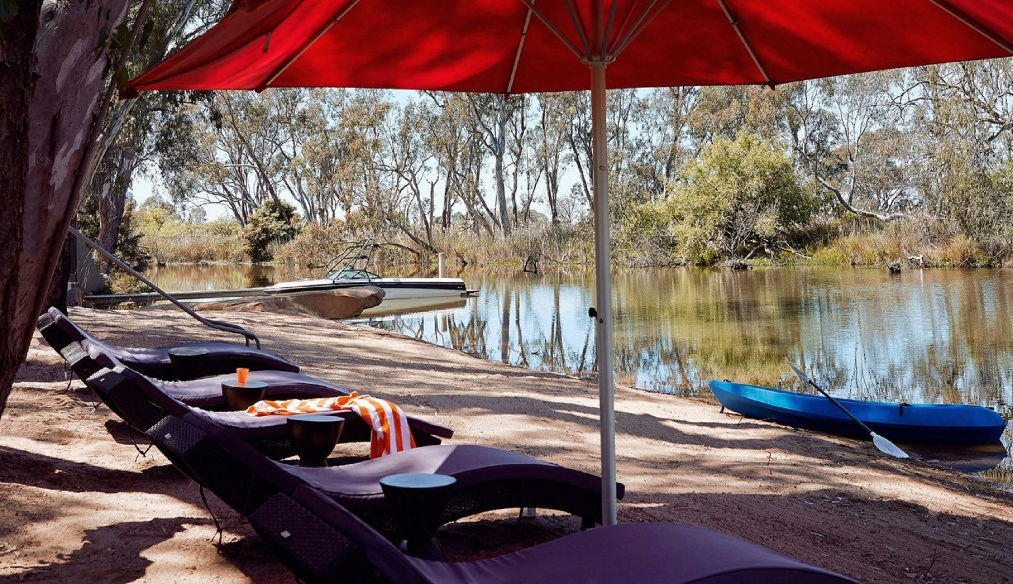 Just 90 minutes from Melbourne, Hide and Seek is a private waterfront retreat with luxury accommodation and a vineyard. The 100-acre property spreads along 3km of sandy river banks, wetlands and pristine rural landscapes beside the Goulburn River.