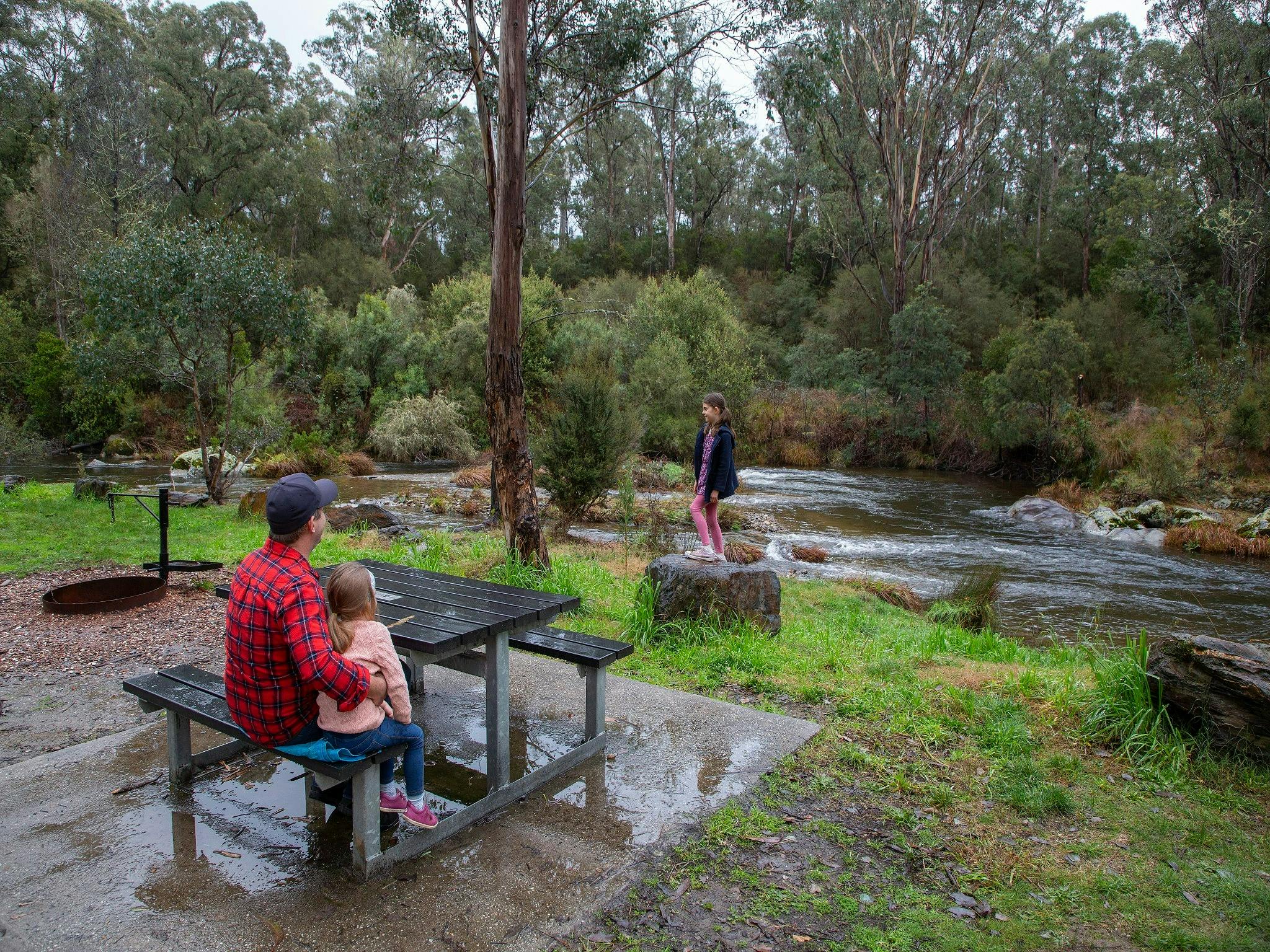Burrowye Reserve offers ample shade, river frontage campsite and safe access to pebbly beach rivers and water.