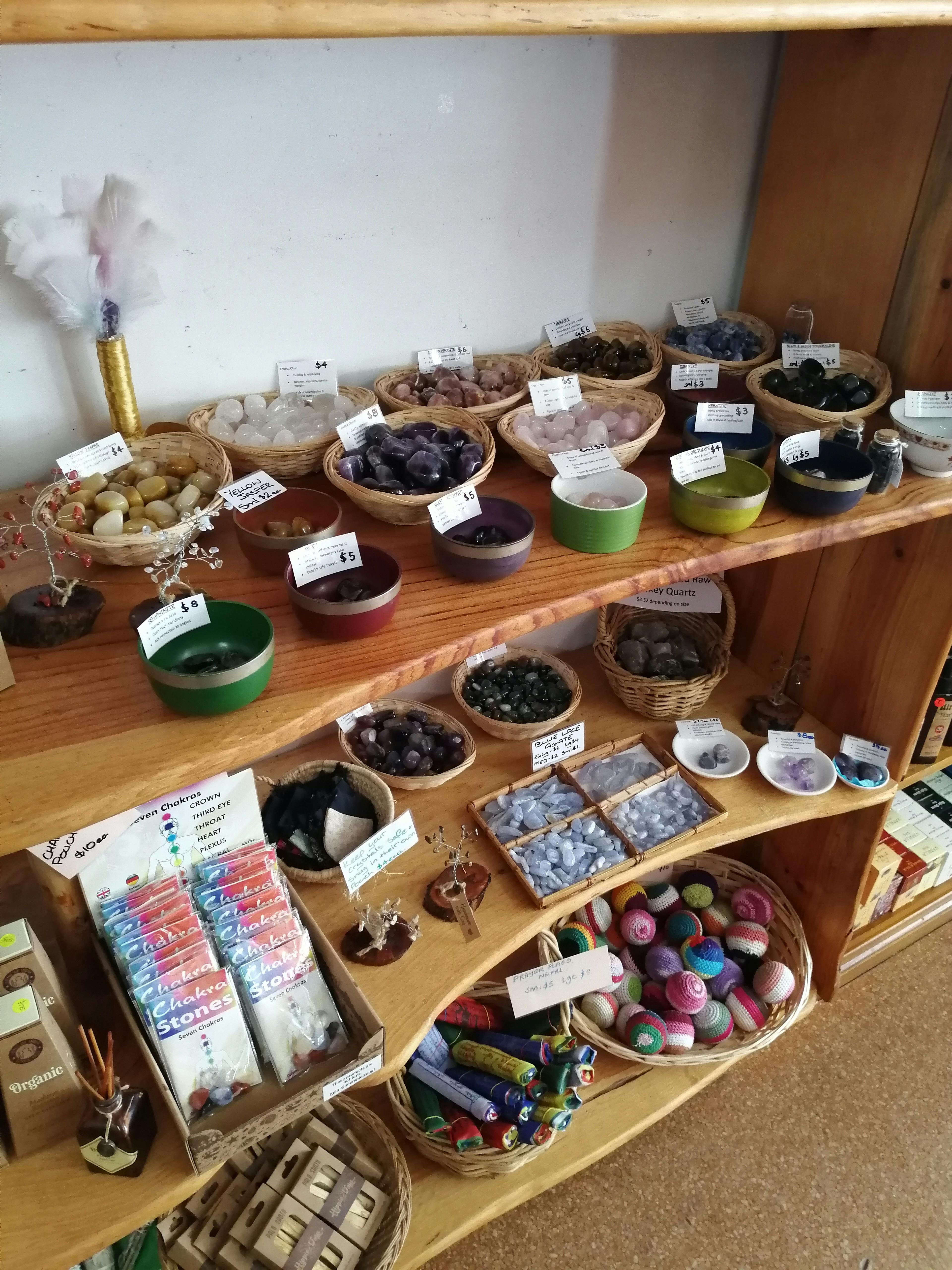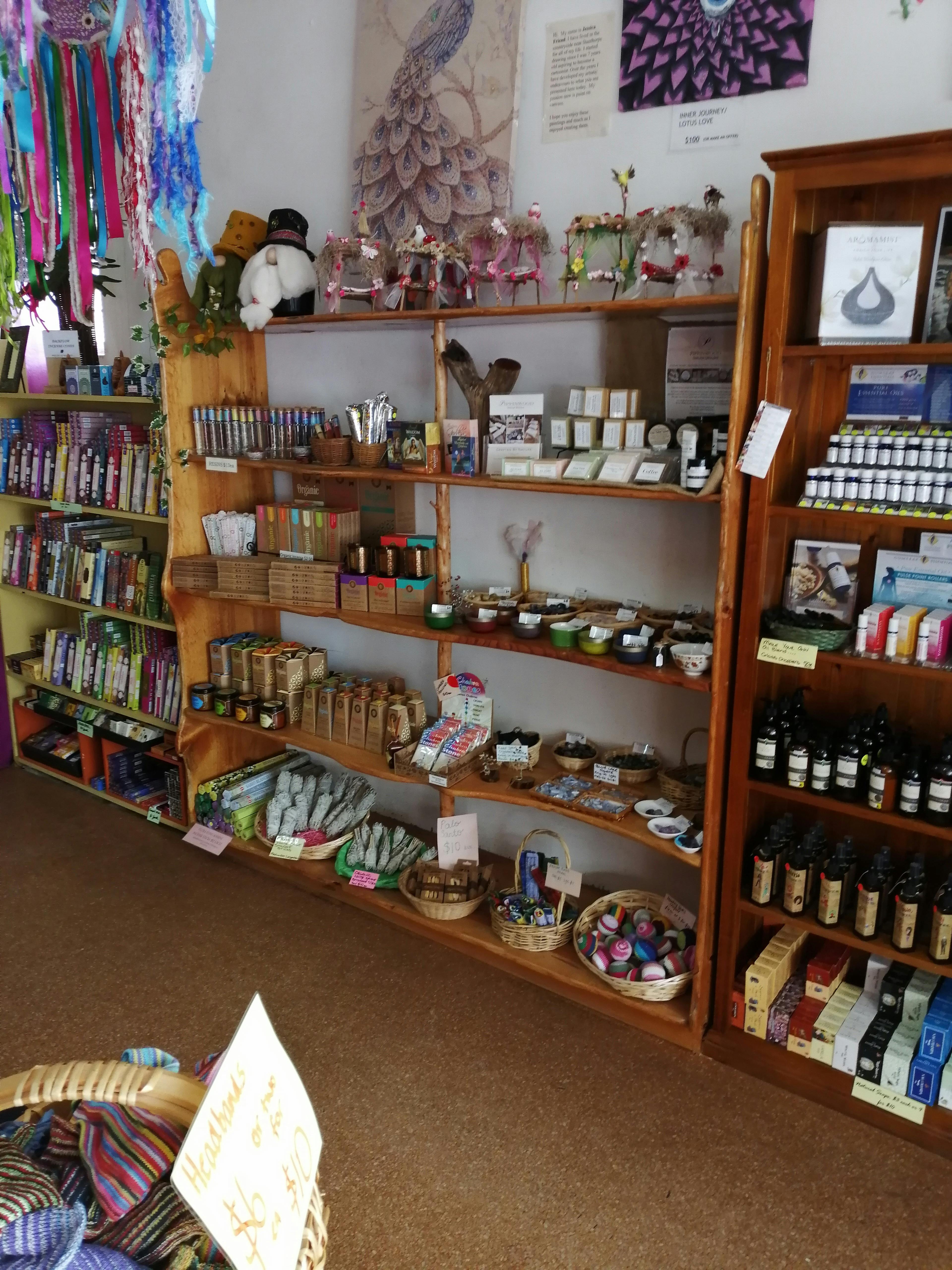 Their store stocks a wide range of metaphysical and spiritual products such as Crystals, Tarot Cards, Singing Bowls, Incense, Prayer Flags and Dried Medicinal Herbs, just to name a few. Along with a variety of other products including Jewellery, Clothing, Home Decor, Ornaments and much more. As well as showcasing some of the amazing artistic talent in the area with locally made Jewellery, Paintings, Pottery, Dreamcatchers and Skin Care.