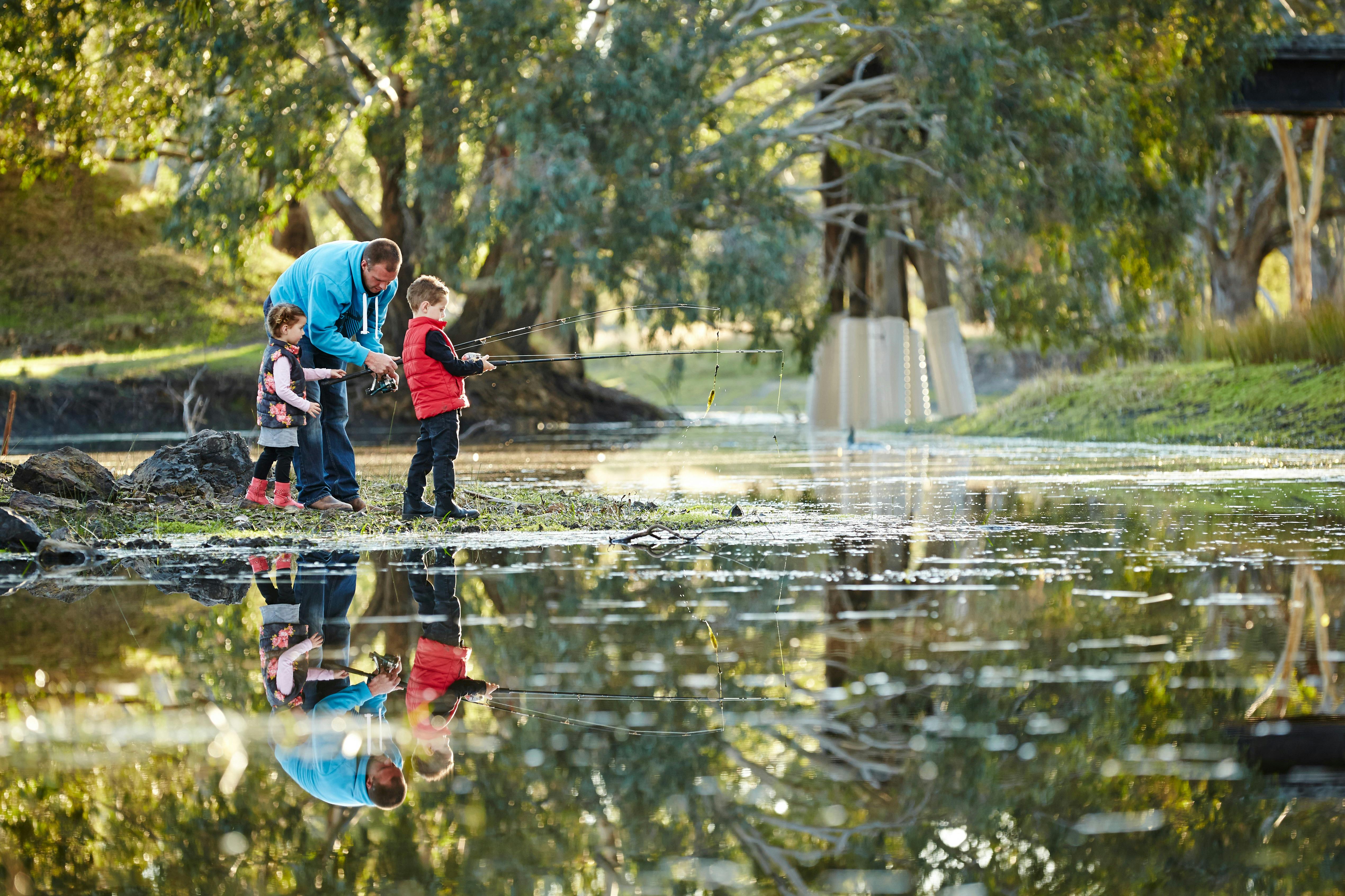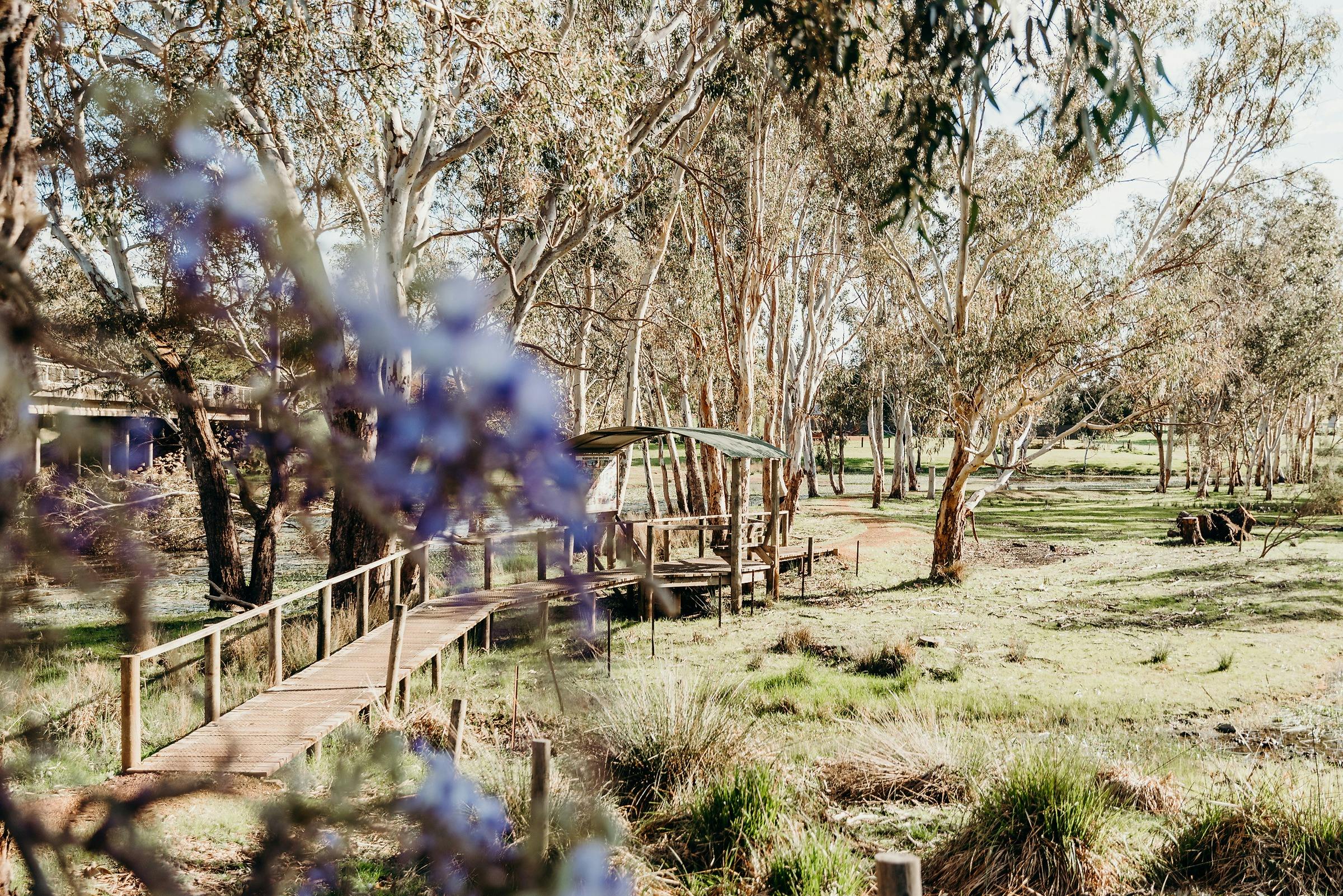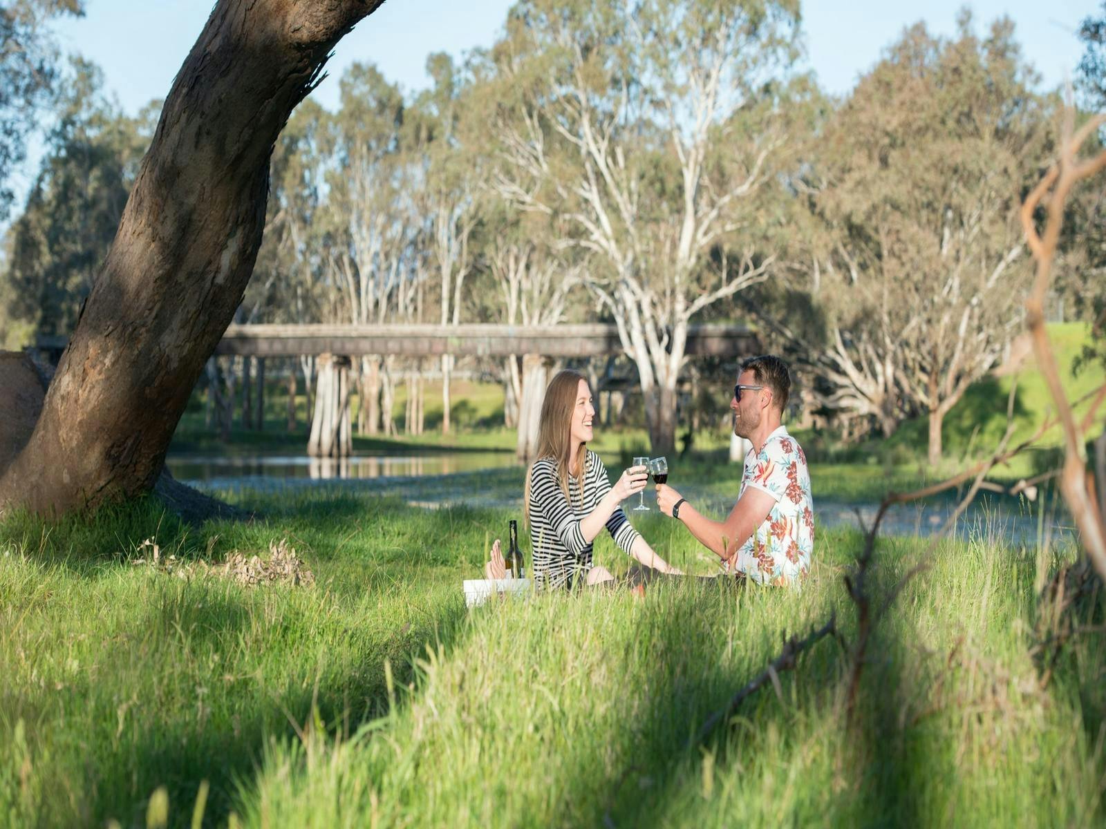 Meander along the river's edge taking a moment to view an ancient and picturesque waterhole used by Police troopers surrounded by century-old trees and views of vast river flats and the Grampians.