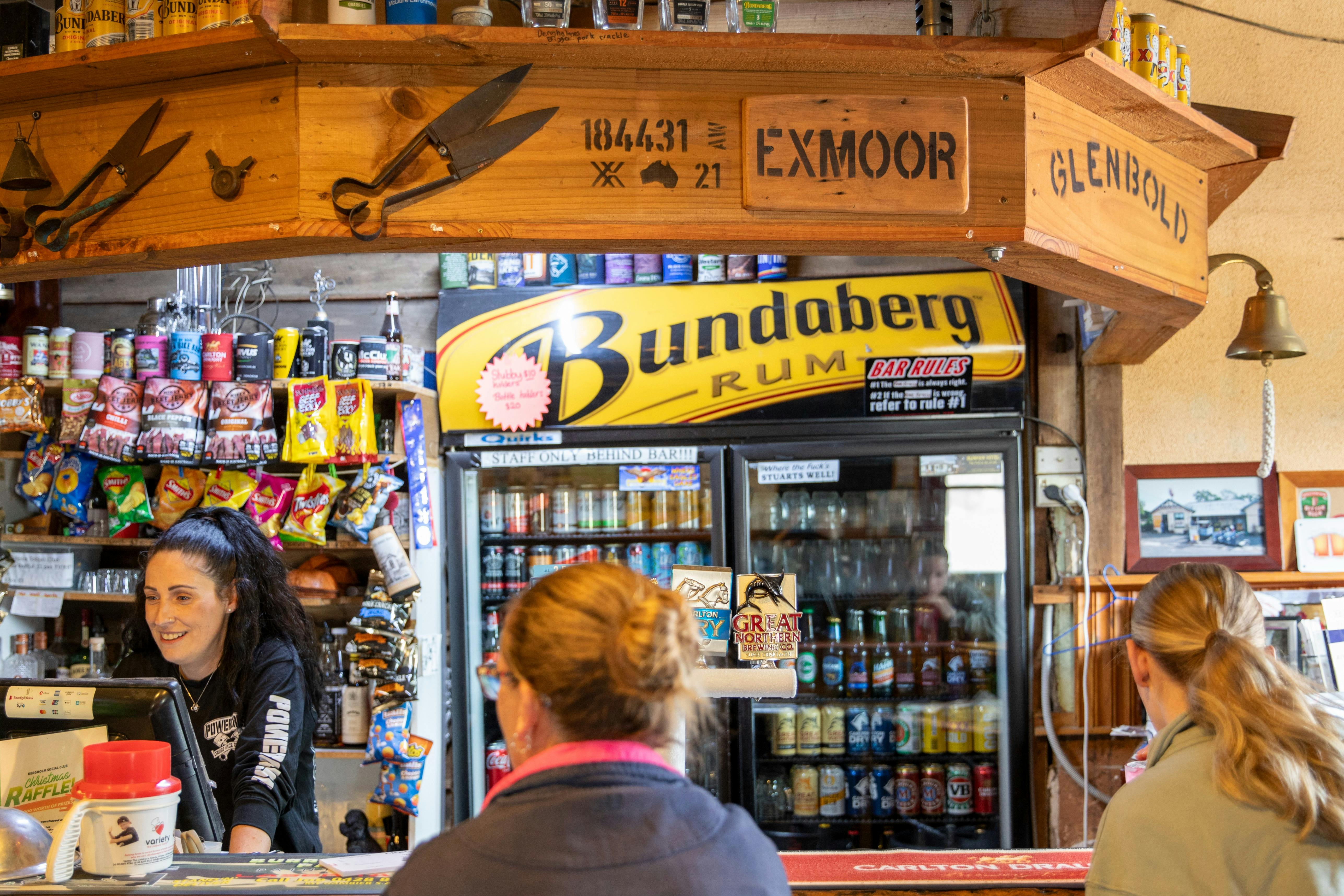 Dergholm Pub is 'The Pub in the Scrub', a small Pub in Western Victoria in the West Wimmera Shire. Open seven days a week and offer food on Thursday, Friday and Saturday. Come enjoy the ambient views of the Dergholm Valley while indulging in the famous Sunday Woodfired Pizzas, bookings advisable. Go for a leisurely drive to the Beautiful Baileys Rocks or drive down to the Glenelg River and enjoy the serenity of the bush. They offer free camping for those wishing to stay another day. Located only 34 kilometres from Casterton - the Home of the Kelpie.