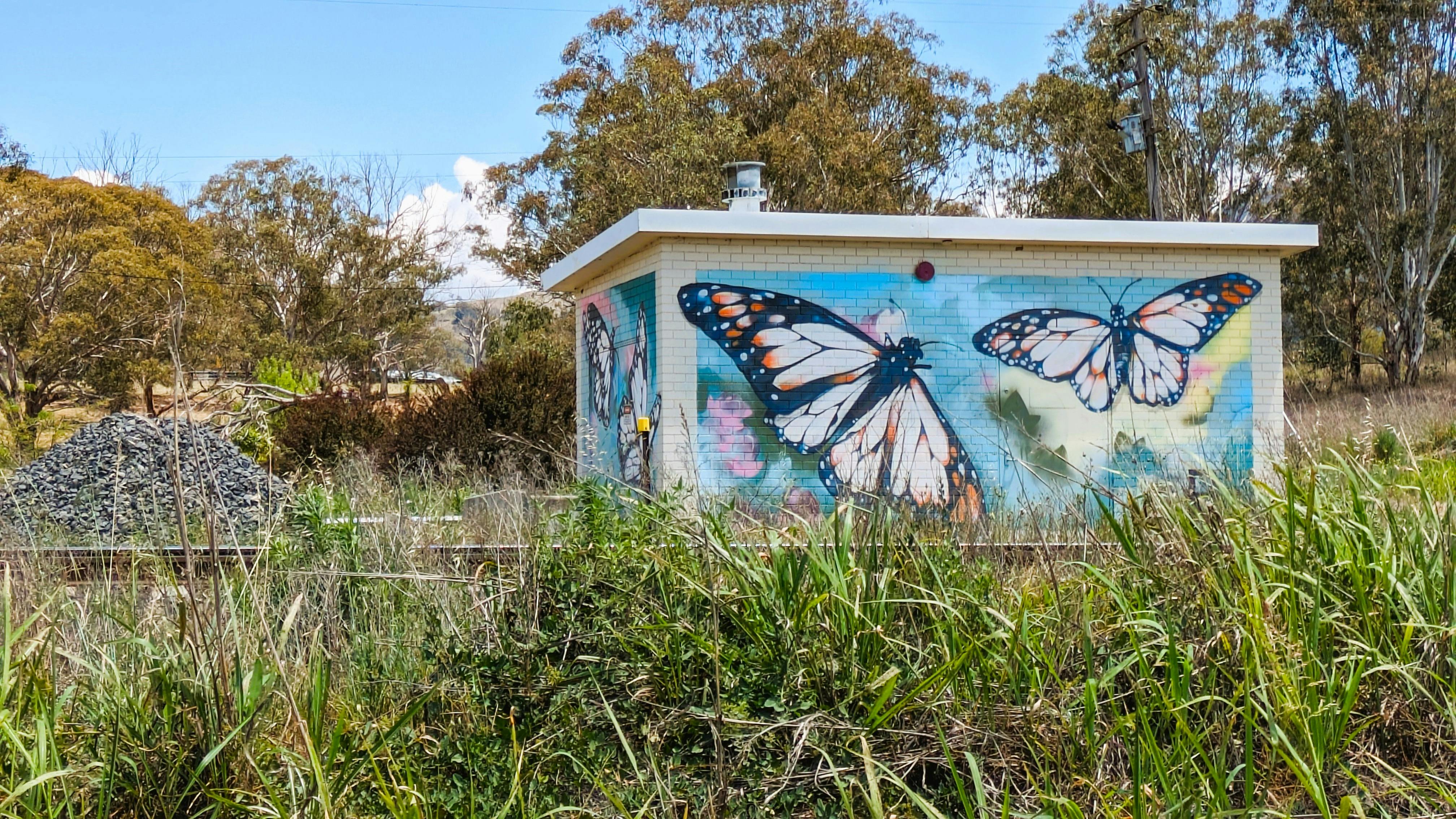 Collaborating with the Australian Rail Track Corporation (ARTC), and the local community, artist Jack Wachtel and his team Binary Creative were enlisted to create designs for murals to adorn the signal and communications box in Dartbrook, New South Wales, part of the Hunter Valley Network railway. Researching local flora and fauna, the artists incorporated elements such as blue wrens, finches, and Willie Wagtails into their artworks. This transformation of the signal station took place in 2018.