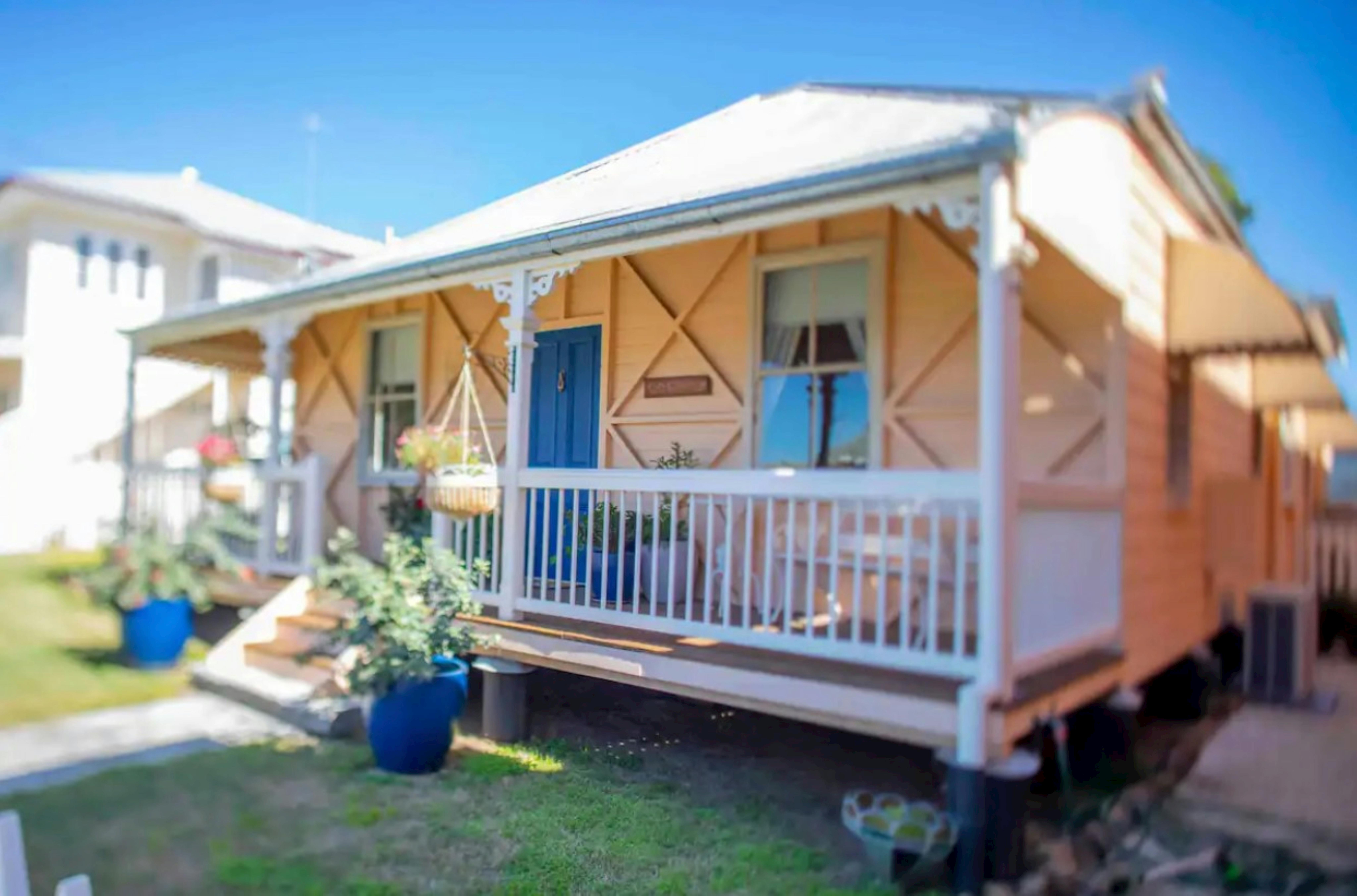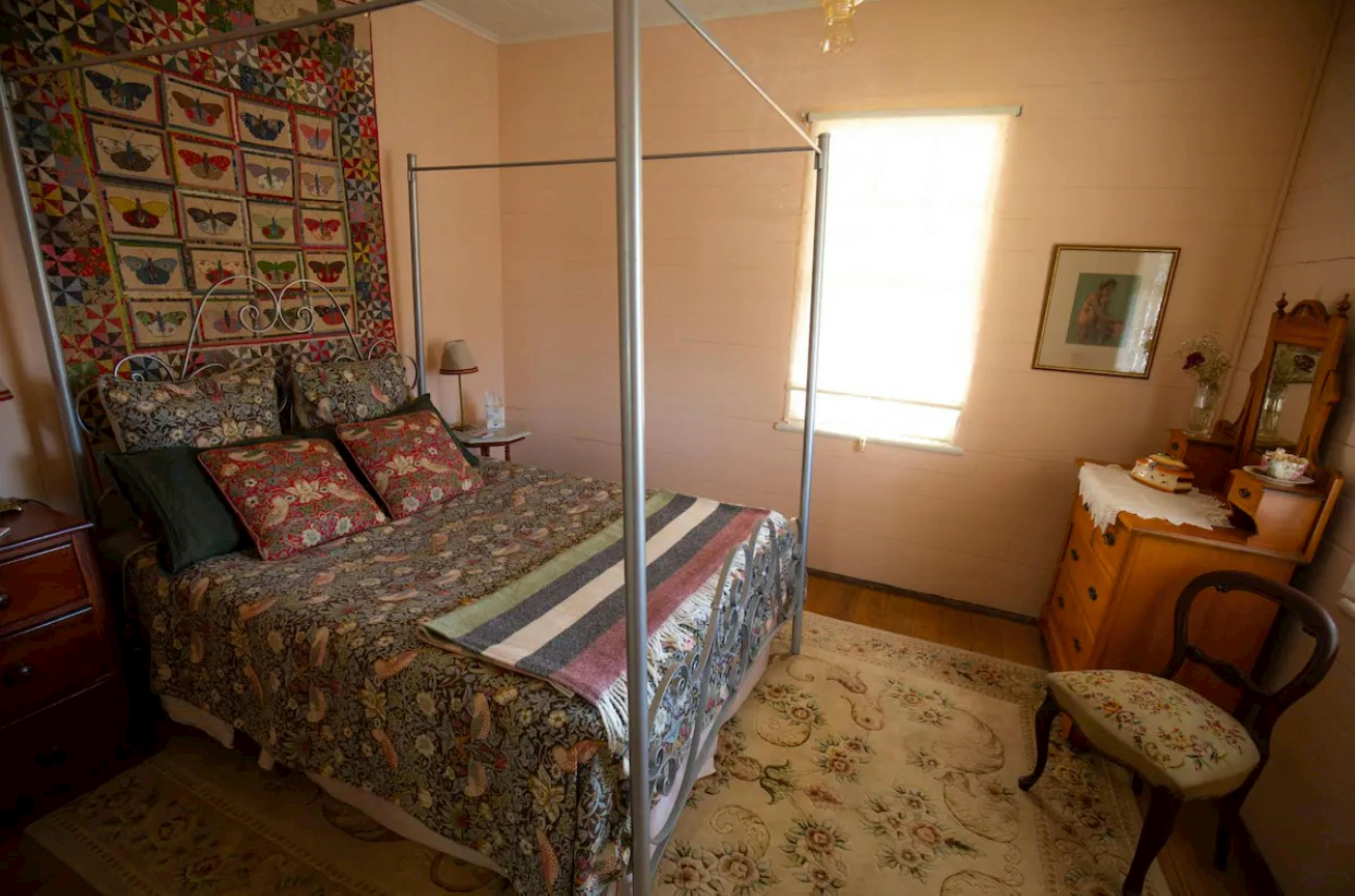 Available as a delightful couple's retreat, the Cottage boasts a lounge and dining room with the original dividing wall removed. There is a kitchen separated from the main house by a breezeway that also houses the bathroom and toilet.