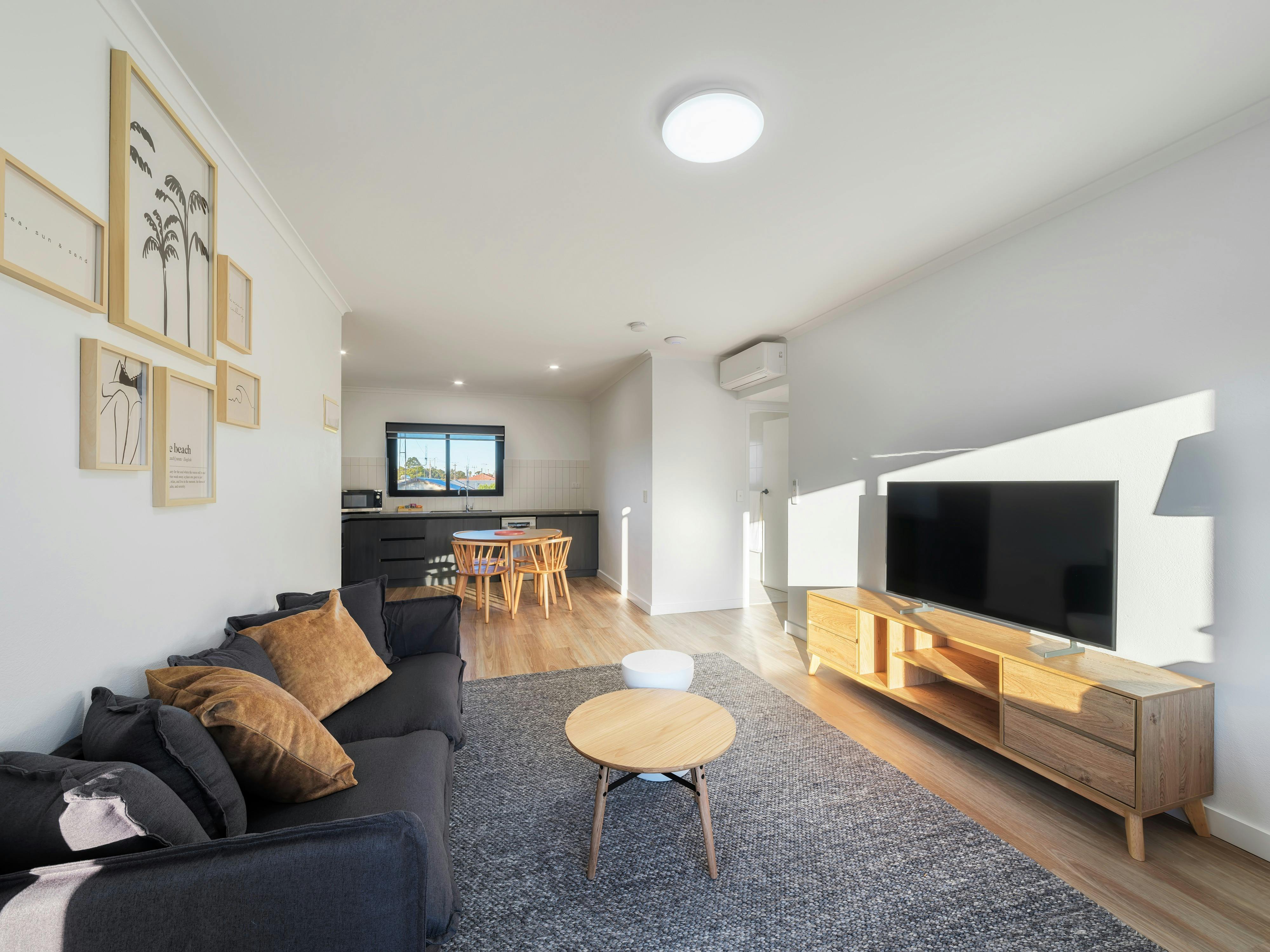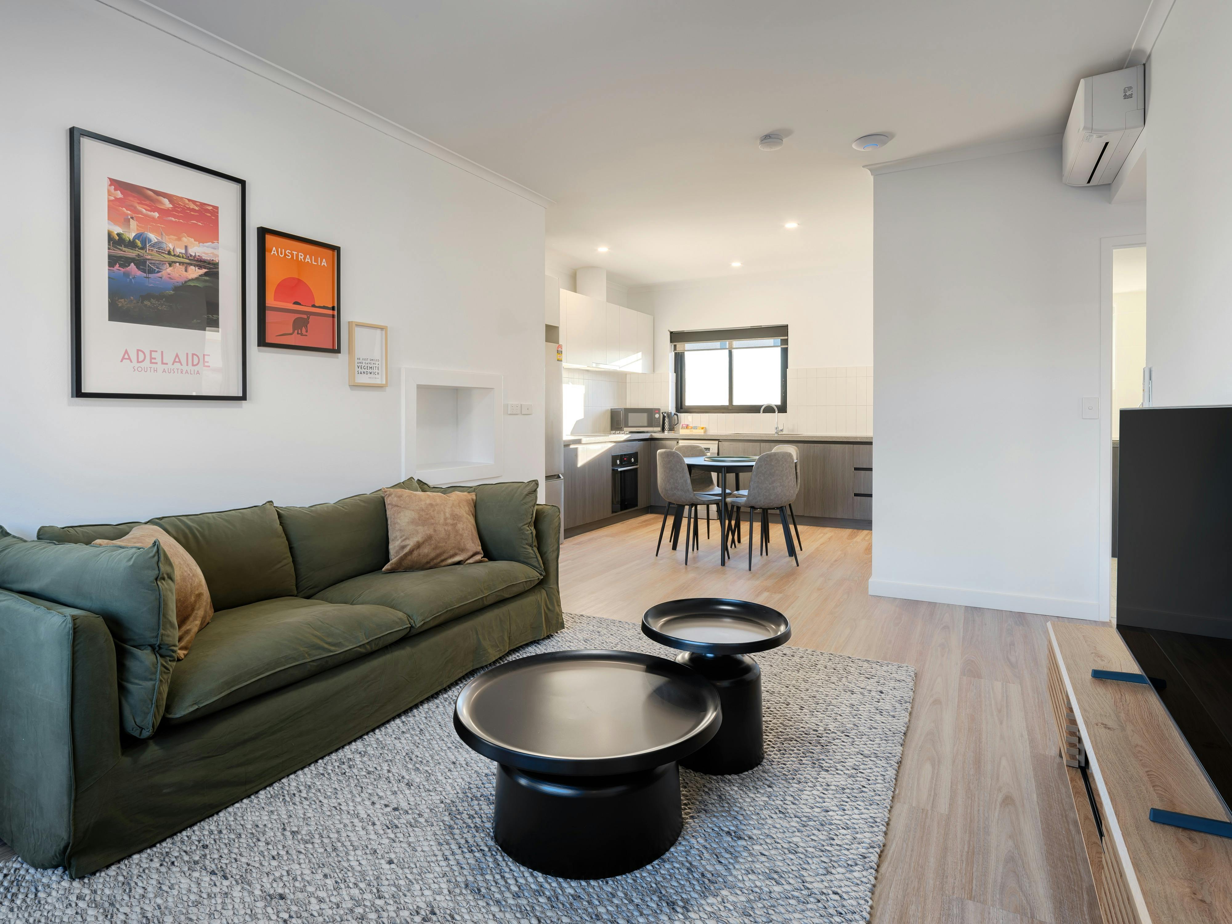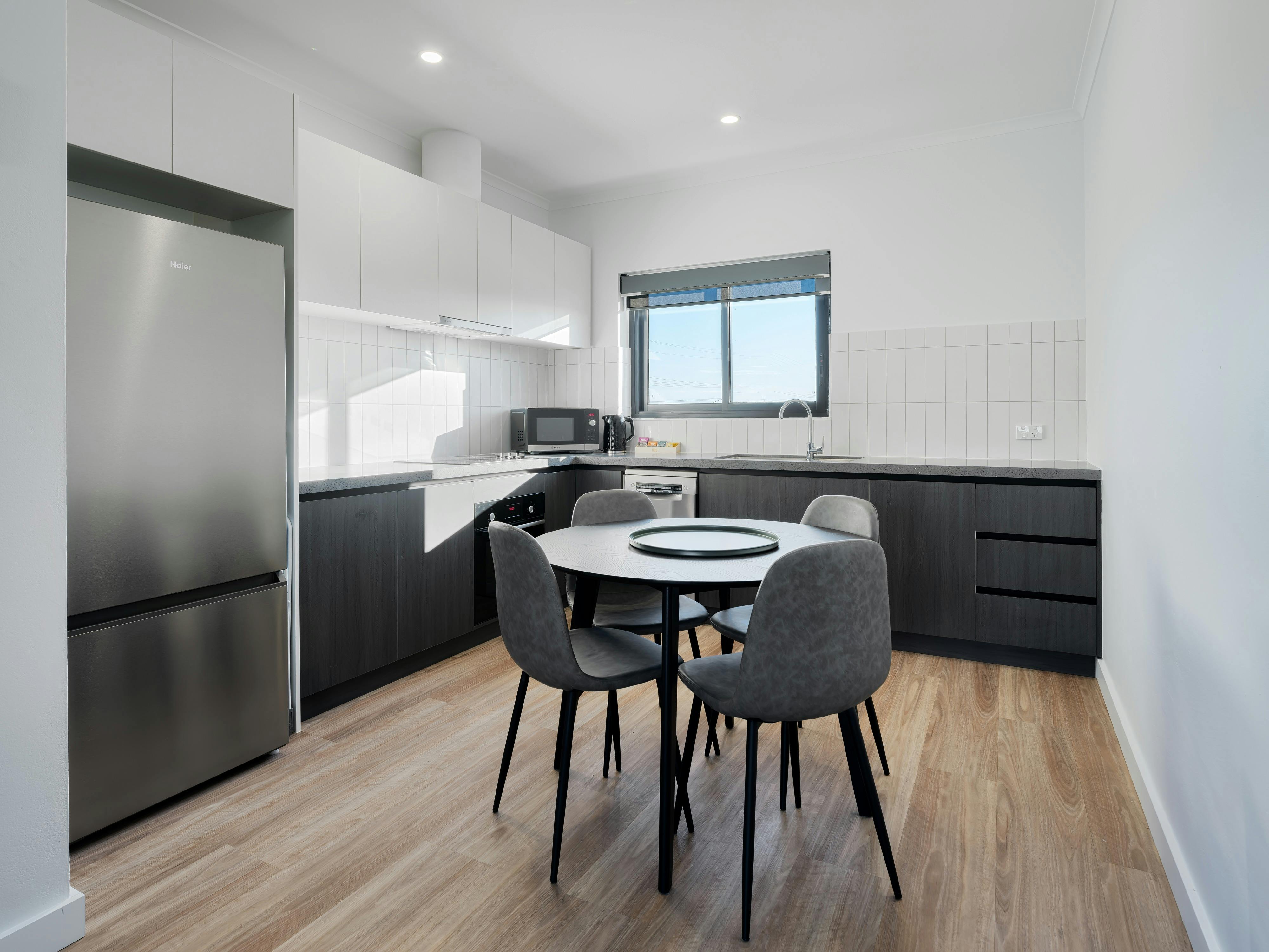Enjoy a sleek, compact bathroom and laundry area, both equipped with premium amenities. Perfectly situated near Whyalla’s attractions, these apartments offer a seamless blend of sophistication and comfort for an extraordinary stay.