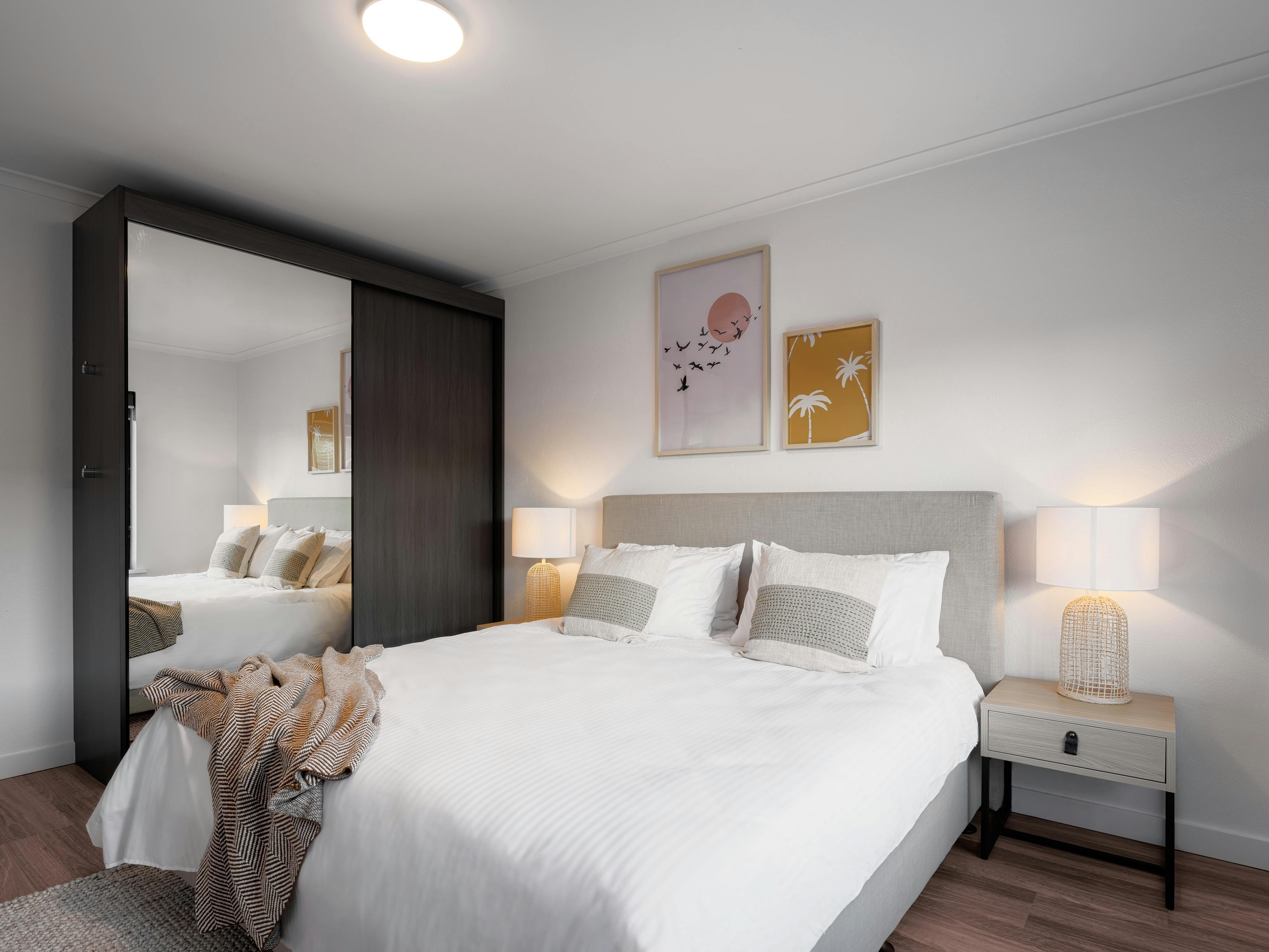 Experience unmatched luxury in Whyalla Skysuites' two-bedroom apartments in Whyalla. Each apartment is thoughtfully designed with a spacious, open-plan living area, elegant furnishings, and contemporary decor.