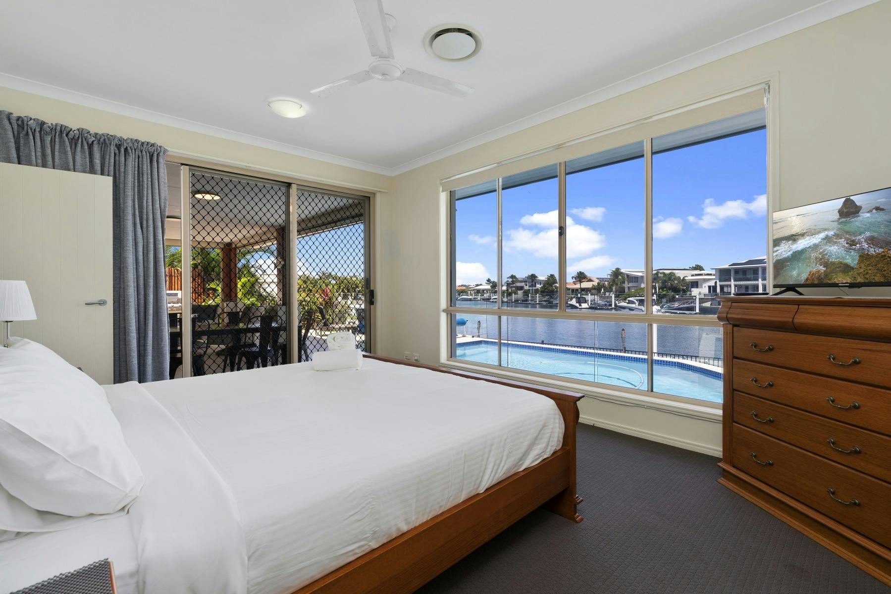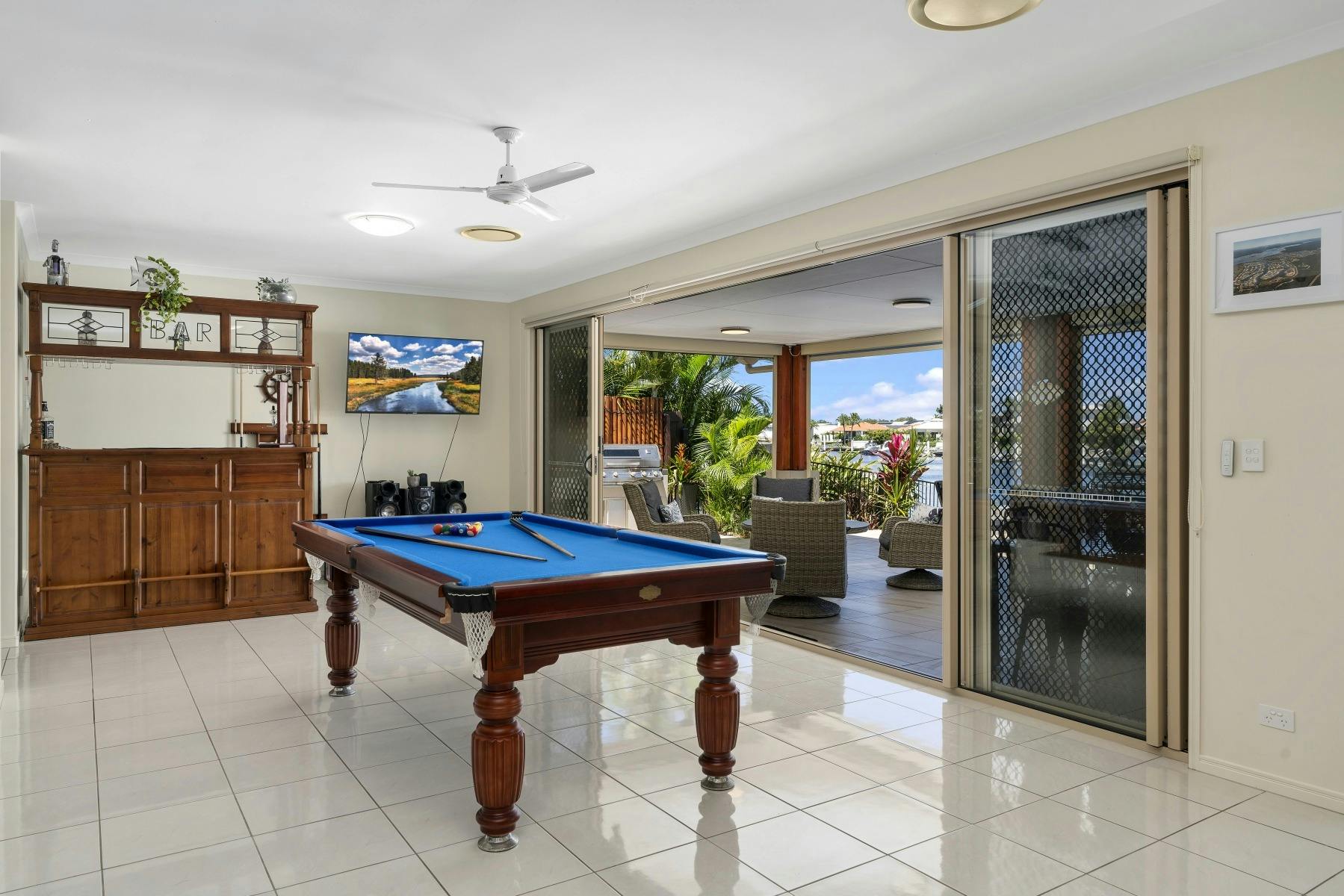 Welcome to your perfect holiday retreat! Nestled in a breathtaking canal front setting, this luxurious five-bedroom, two-bathroom retreat offers the epitome of comfort and style that will captivate you from the moment you arrive. The property boasts an inviting swimming pool, ideal for leisurely dips and basking in the warm sunshine. With high ceilings and a spacious layout, this grand residence exudes an air of sophistication and comfort, providing an expansive and relaxing atmosphere for you and your loved ones. Designed with families in mind, this holiday home is not only aesthetically pleasing but also caters to the needs of your furry friends, making it a truly family and pet-friendly escape. Enjoy the seamless blend of modern amenities and classic charm, creating an unforgettable backdrop for your holiday memories. For the boating enthusiasts, a private pontoon awaits, inviting you to embark on aquatic adventures along the scenic canal and on to the passage. Whether you're in the mood for a leisurely cruise or angling for the catch of the day, this property caters to your every whim. Indulge in the tranquillity of the surroundings, whether lounging by the pool, playing a game of pool, fishing from the pontoon or watching the dolphins swim past your back yard. This property is your gateway to a luxurious and rejuvenating vacation experience.
