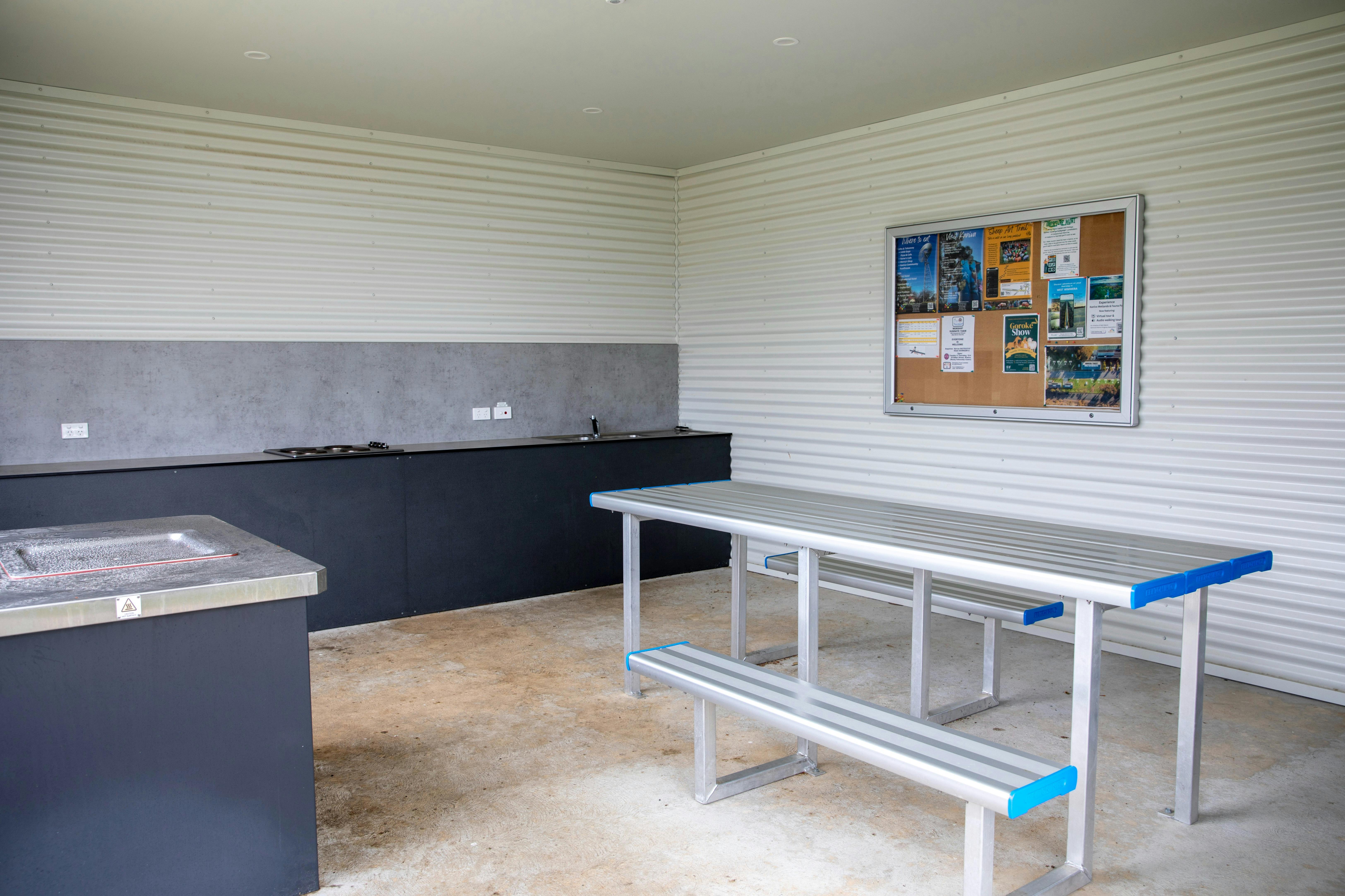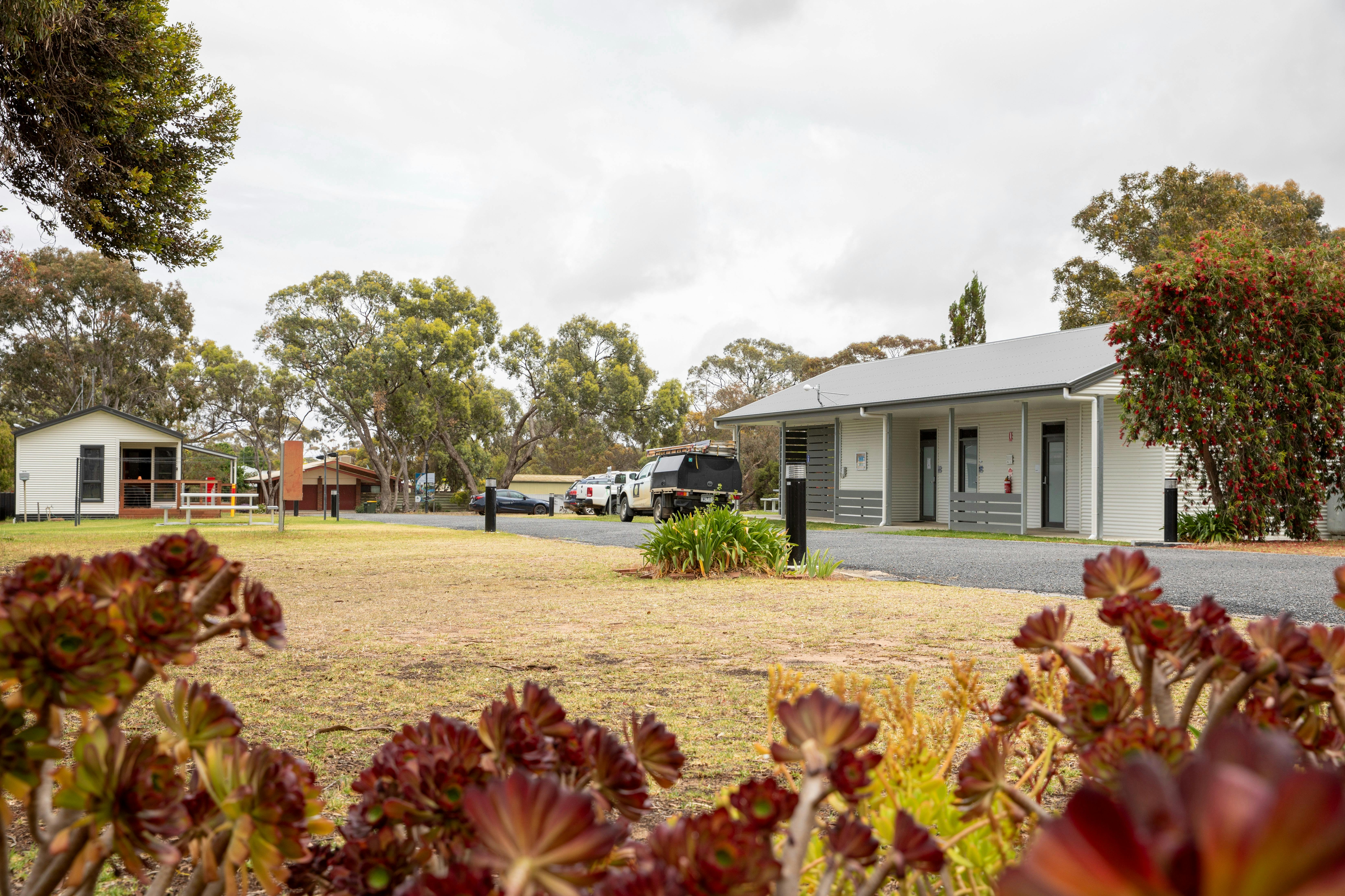 The park is grassed, has an undercover powered camp kitchen, all accessible amenities block, laundry including coin operated washing machine, RV dump point, children's playground and is pet friendly.