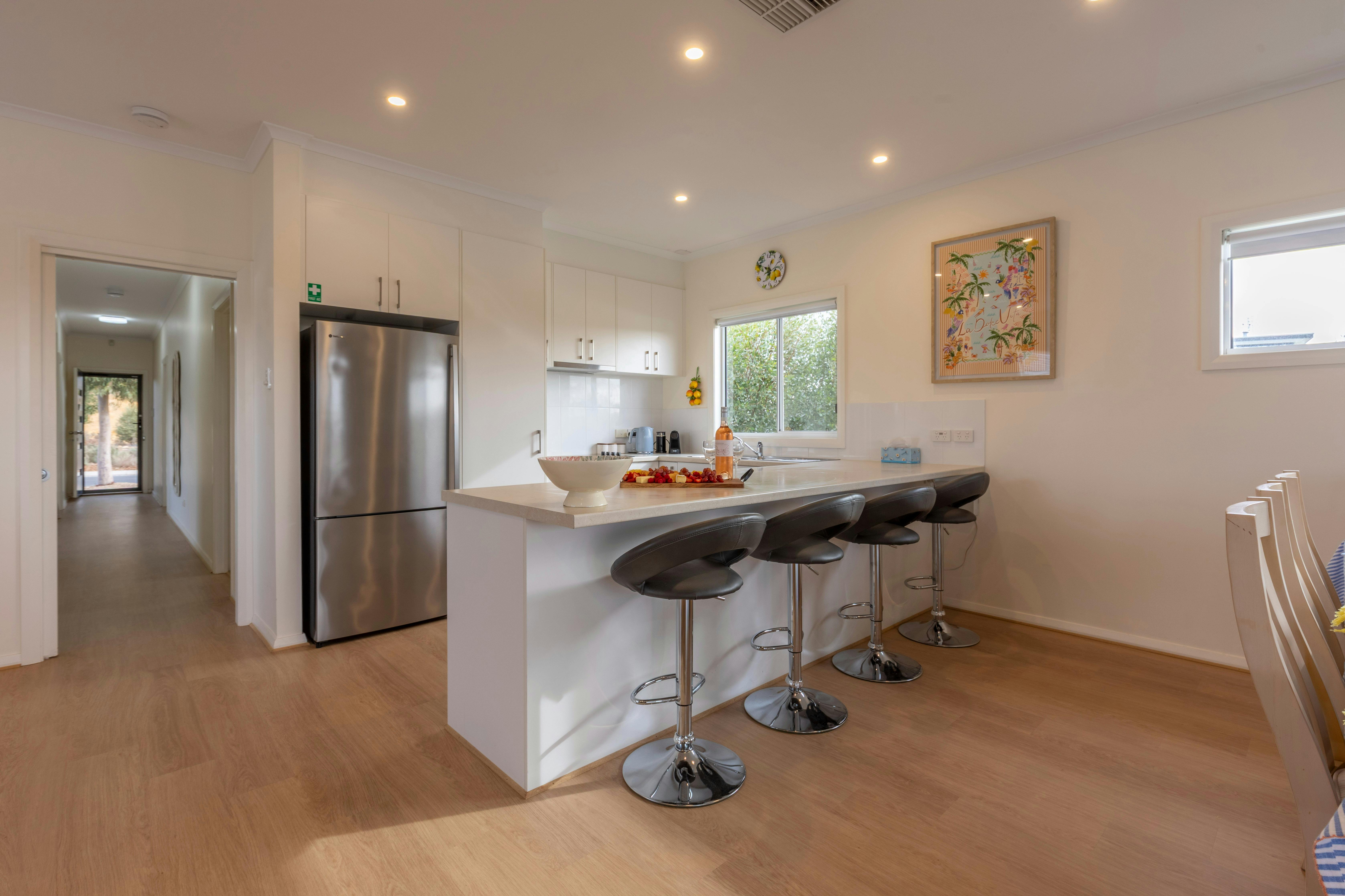 La Dolce Vita - "The Good Life" Set in a prime riverfront position directly opposite the Mannum Waters Marina entrance, this stylish 3.5-bedroom home offers the perfect fusion of modern comfort and laid-back waterfront living. Designed for seamless indoor-outdoor flow, it's ideal for long, lazy lunches, family gatherings, or simply soaking up the river lifestyle. Light-filled open-plan living spaces connect effortlessly to the well-equipped kitchen and dining area, where large glass doors capture panoramic water views and spectacular sunrises. The kitchen boasts sleek finishes, quality appliances, and generous bench space—perfect for shared meals and entertaining. With three generous bedrooms, there's room for families, couples, or small groups.  The master features an ensuite. A separate lounge area with a sofa bed will allow for the extra's. Outside, a covered alfresco area leads to kid-safe waters and a private pontoon—perfect for boating, kayaking, fishing or stargazing under wide country skies. Whether you're after a peaceful weekend retreat, a fun-filled family holiday, or a memorable getaway with friends, this home delivers an unforgettable riverfront experience just minutes from Mannum.
