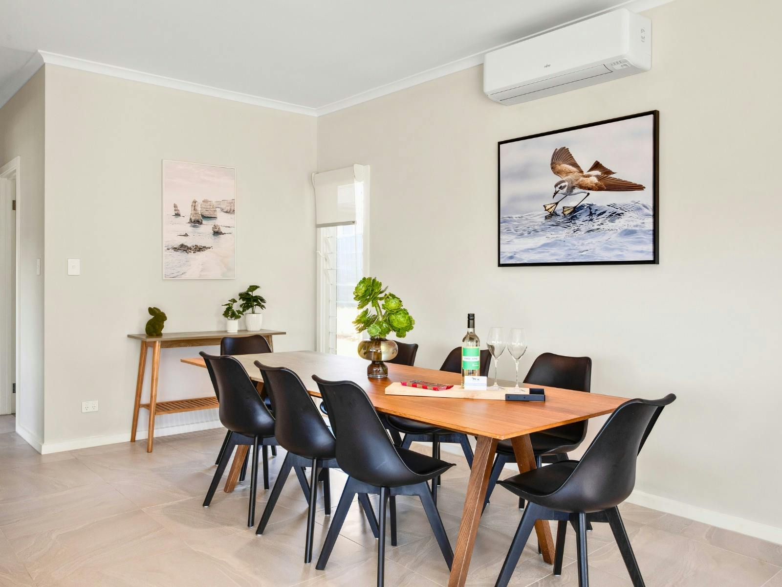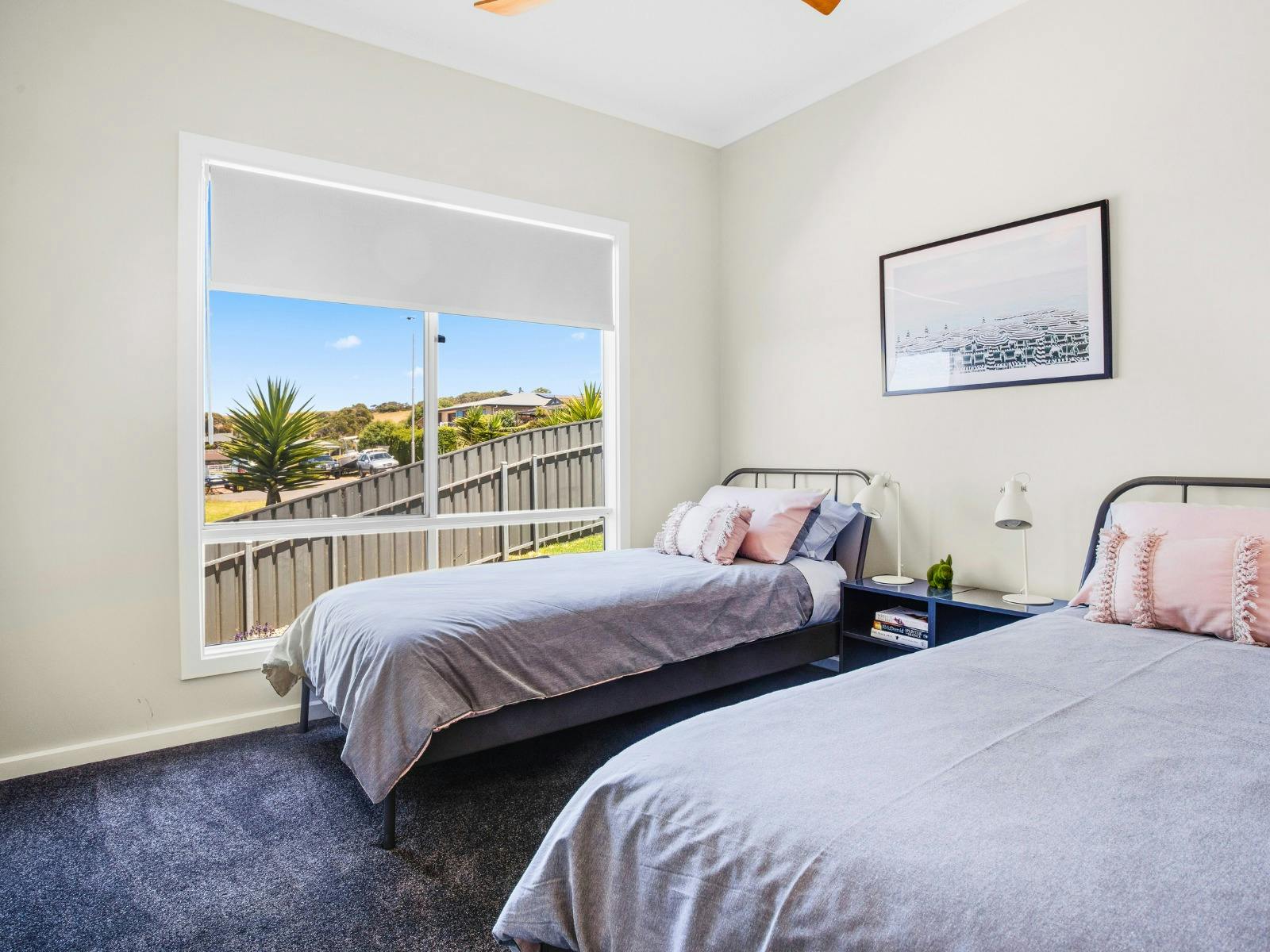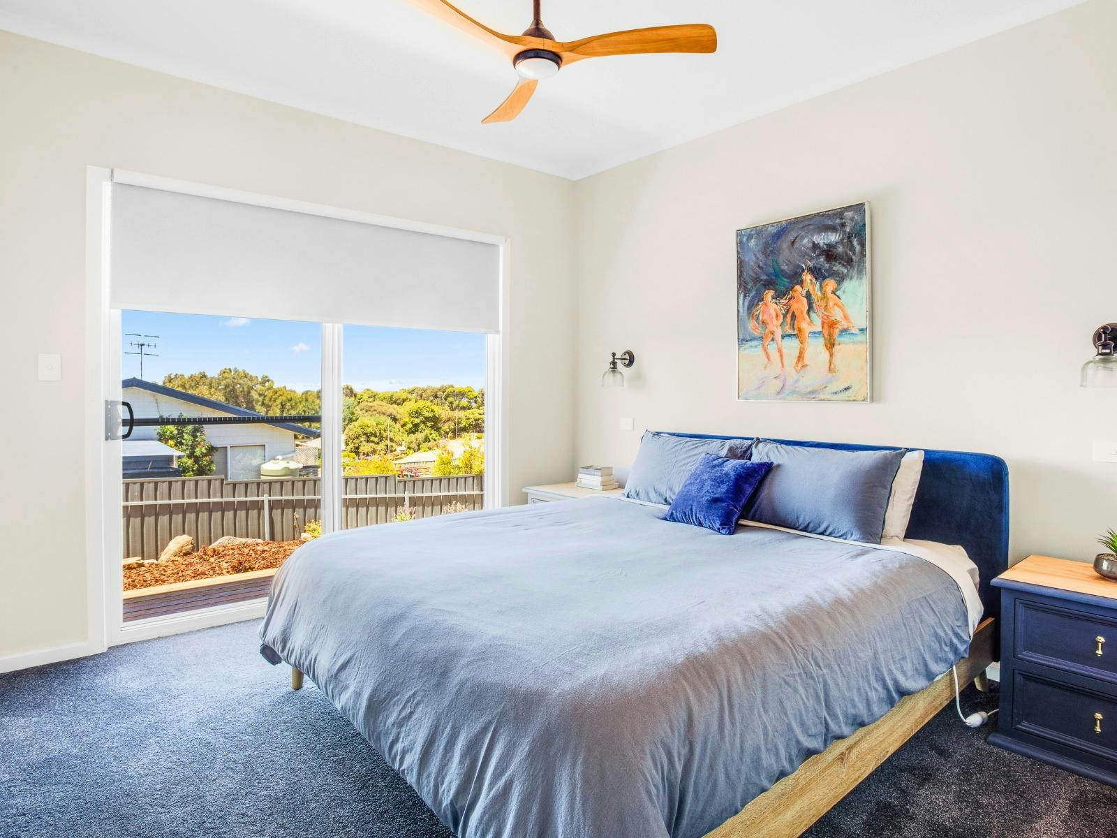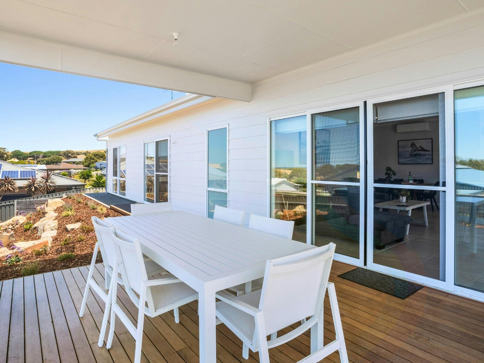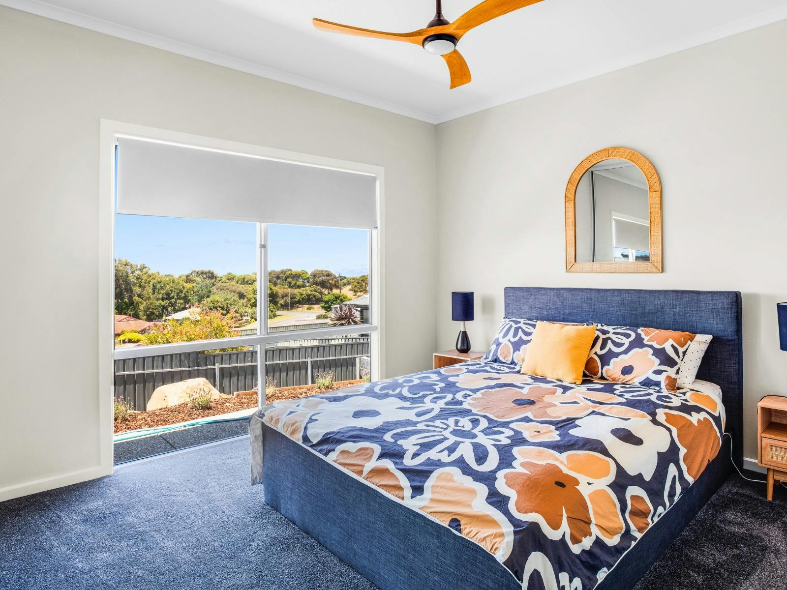This stylish holiday home offers light-filled, contemporary comfort with sea views from every main room, including all three bedrooms. It's perfect for families or friends seeking a relaxing coastal escape. The open-plan living area features a fully equipped kitchen with island bench, coffee pod machine, dishwasher, and microwave, along with a comfortable modular lounge, smart TV with Netflix, games, books, and high-speed Wi-Fi. Step outside to a spacious timber deck with ocean views, outdoor dining for six, and a gas BBQ. The home is pet-friendly and fully fenced, with easy access to a lawn area through a pet door. All bedrooms offer ocean or hillside views. The master bedroom has a king bed, ensuite, and deck access. The second bedroom has a queen bed, and the third has two singles. The home is climate-controlled with a split system, quiet ceiling fans, electric blankets, and solar power. The main bathroom has a walk-in shower, bath, and separate toilet. A remote garage plus extra parking is included. Located minutes from Kings Beach, The Bluff, Heysen Trail, and Victor Harbor's attractions, this home offers the ideal base for exploring Encounter Bay. Book now and enjoy a peaceful retreat by the sea.