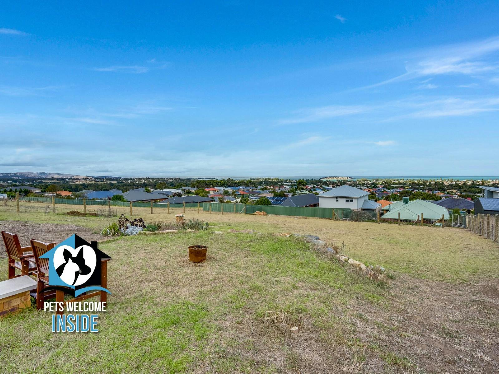 Experience panoramic sea views from this spacious, pet-friendly 4-bedroom, 2-bathroom holiday home set on just under 1 acre of fully fenced land. Positioned on the bluff, enjoy breathtaking coastal vistas stretching all the way to the Coorong, an ideal spot to unwind, relax, and soak up the holiday vibes. Don't forget to bring your favourite wine!