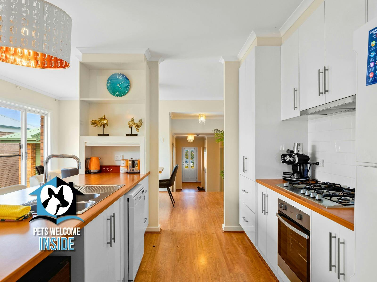 Stay comfortable year-round with new ducted and zoned reverse-cycle air conditioning, plus a cozy wood-burning fireplace in the living room for cooler months. The dining area seats eight and opens onto a side courtyard. The modern kitchen boasts a breakfast bar with four stools, gas cooking, microwave, dishwasher, coffee machine, and more.
