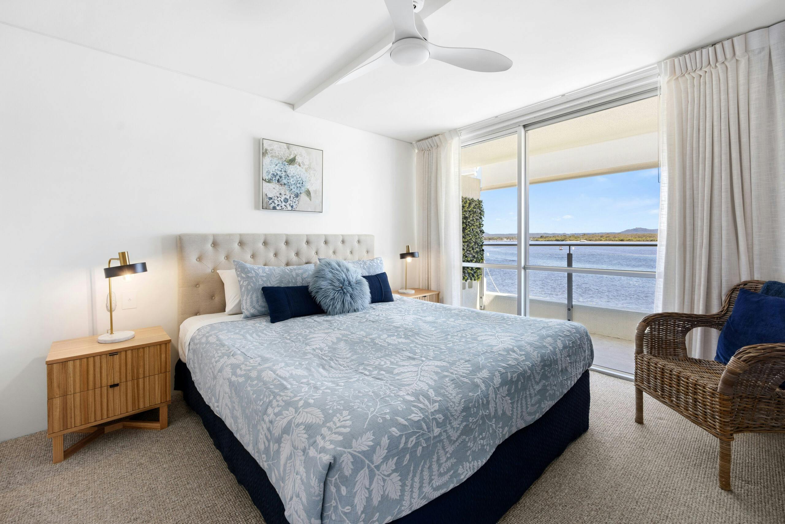 Situated on Quamby Place, Apartment 8 – Las Rias offers the ultimate absolute waterfront retreat. Perfectly positioned on the first floor immerse yourself in the awe-inspiring 180-degree panoramic Noosa River views that stretch south to Noosaville, west to the Noosa Hinterland, and north to the river mouth and Laguna Bay.