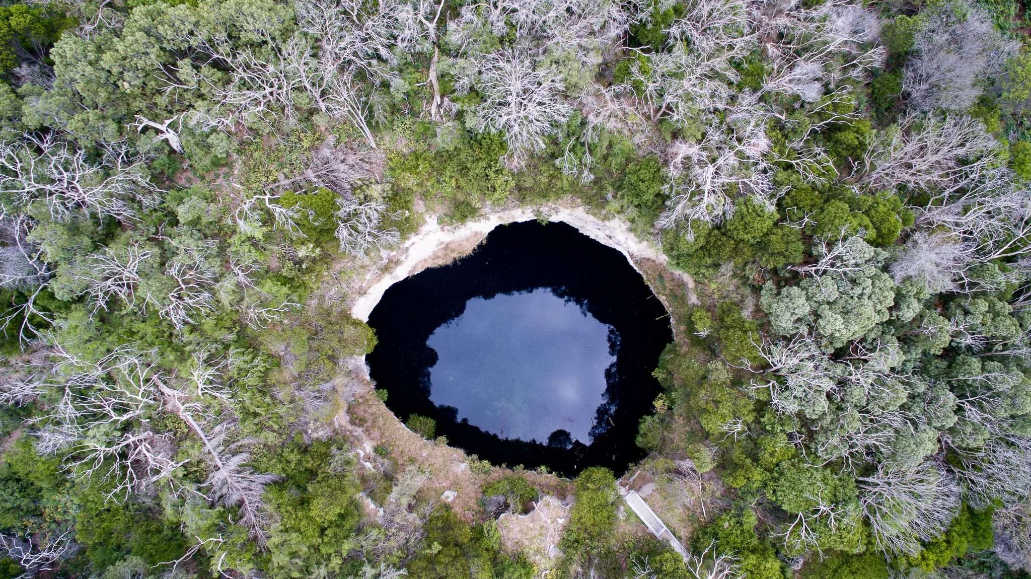Hells Hole is located in Caveton. The viewing platform gives a great vantage point for the 45m wide sinkhole. What looks like deep black water, is instead the clearest water. A walking trail has been established onsite as an easy walk to and from the sinkhole and carpark. Please note there is restricted access into the sinkhole, visitors must be a current member of the Cave Divers Association of Australia to gain diving access and a permit must be obtained from Forestry SA.
